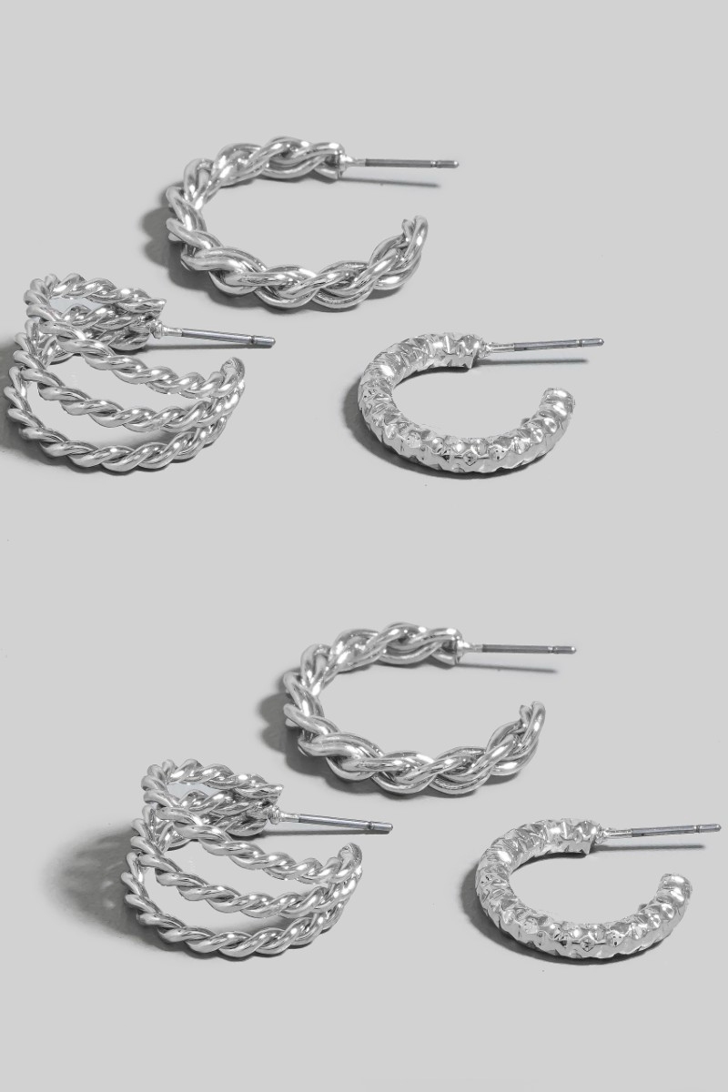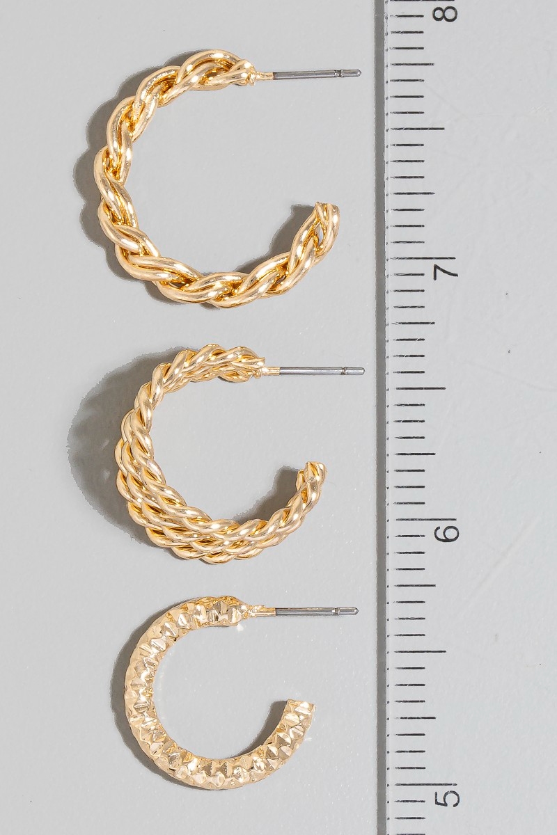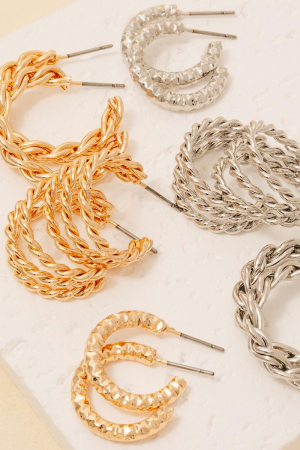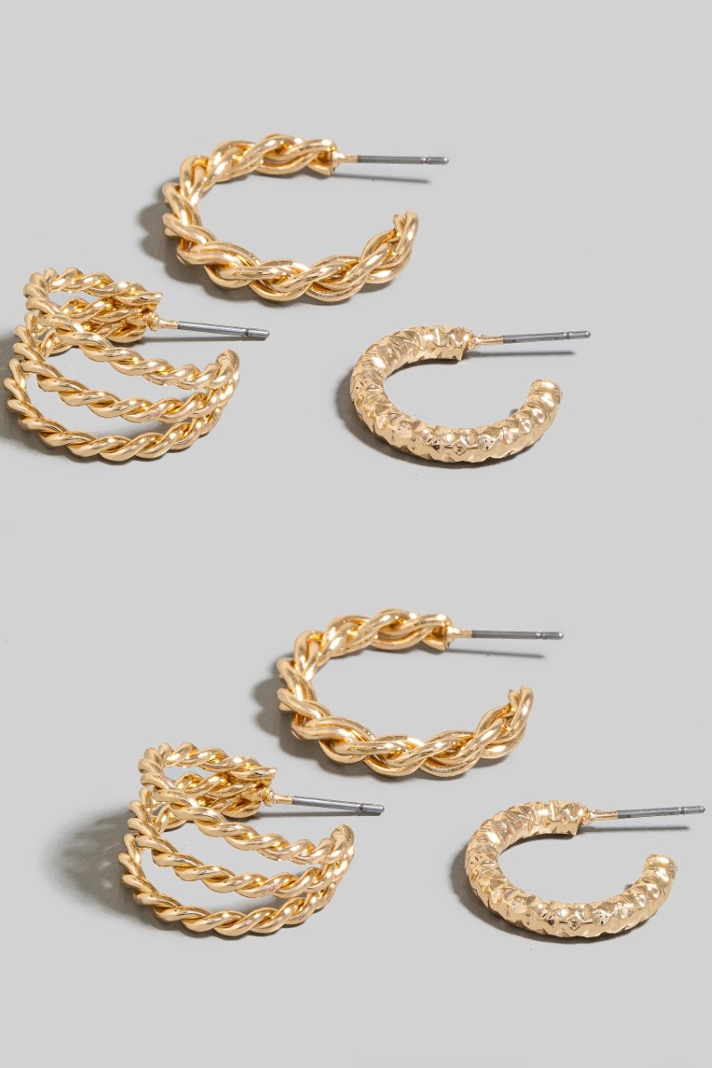 - This pair of hoop earrings brings a stunning 6pc two tone textured set style. Unveil a new dimension of sophistication as this pair of hoop earrings effortlessly enhances the elegance of your ensemble.