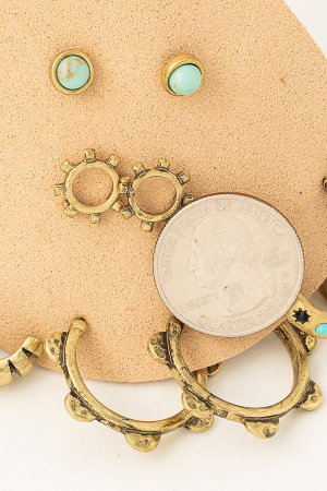 Secret Box Gold Dipped Mixed Shape Stud Earrings Set