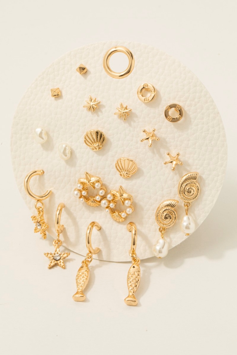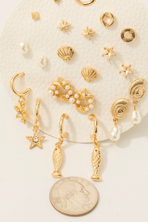 • This pair of stud earrings introduces a unique assorted sea life 10 pair set style. Immerse yourself in the details of design, as this pair of stud earrings effortlessly becomes a conversation starter.