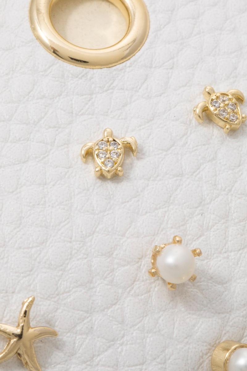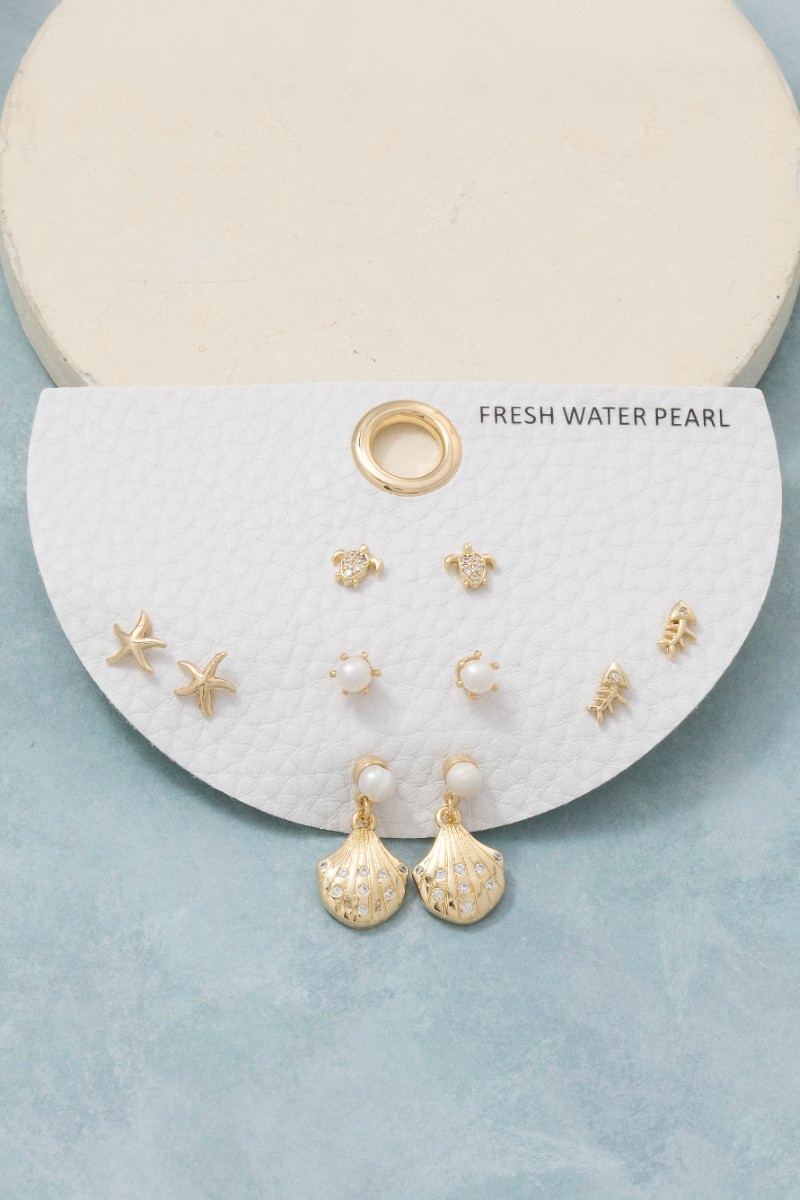 - This pair of stud earrings brings a unique assorted sea life themed set style. Explore a blend of classic charm and contemporary flair.