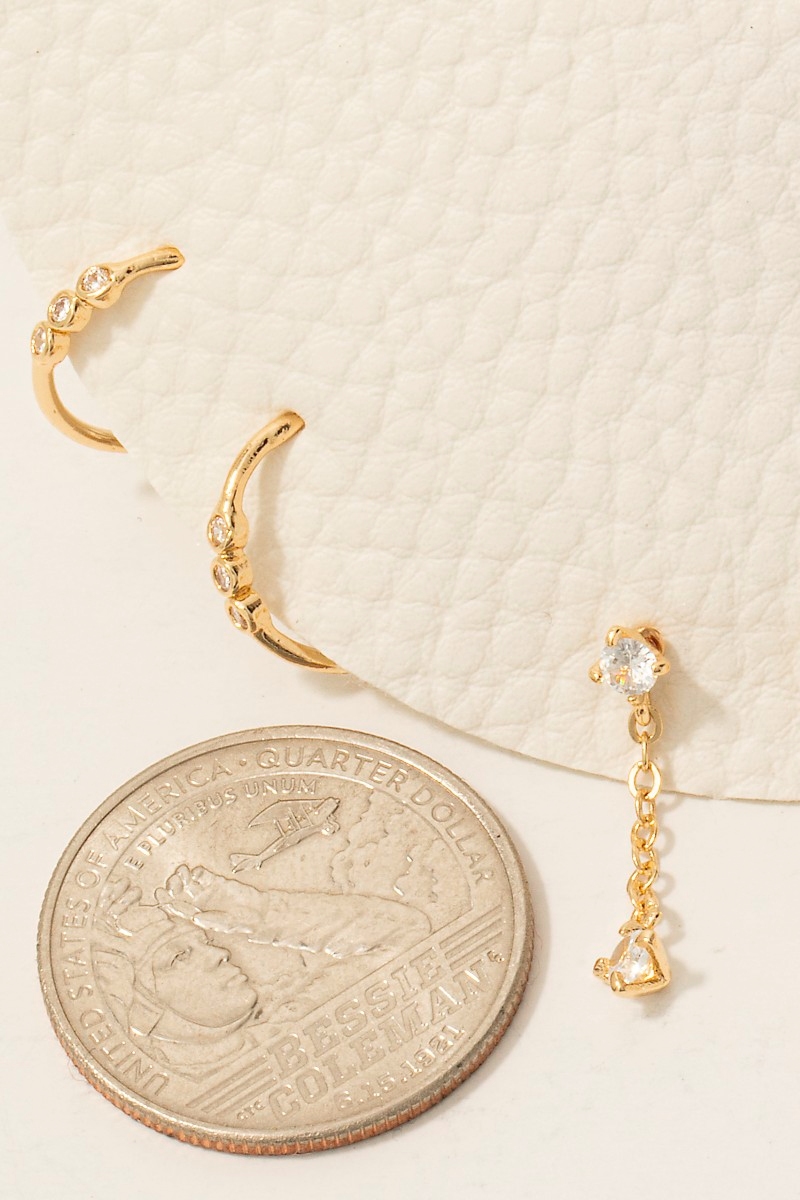 - This pair of dangle earrings showcases a timeless dainty rhinestone hoop set style. Immerse yourself in the world of understated glamour as this pair of dangle earrings effortlessly exudes timeless appeal.