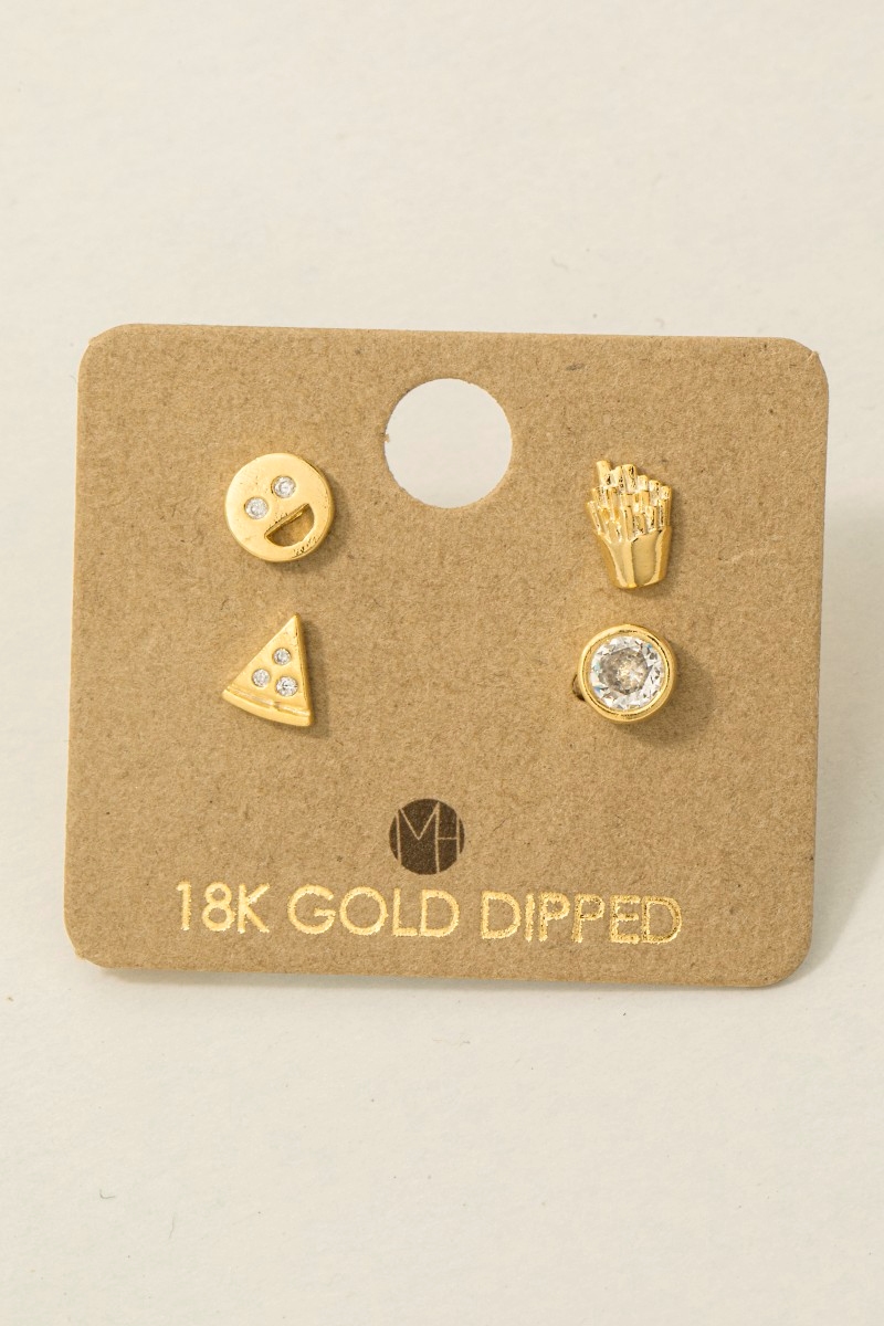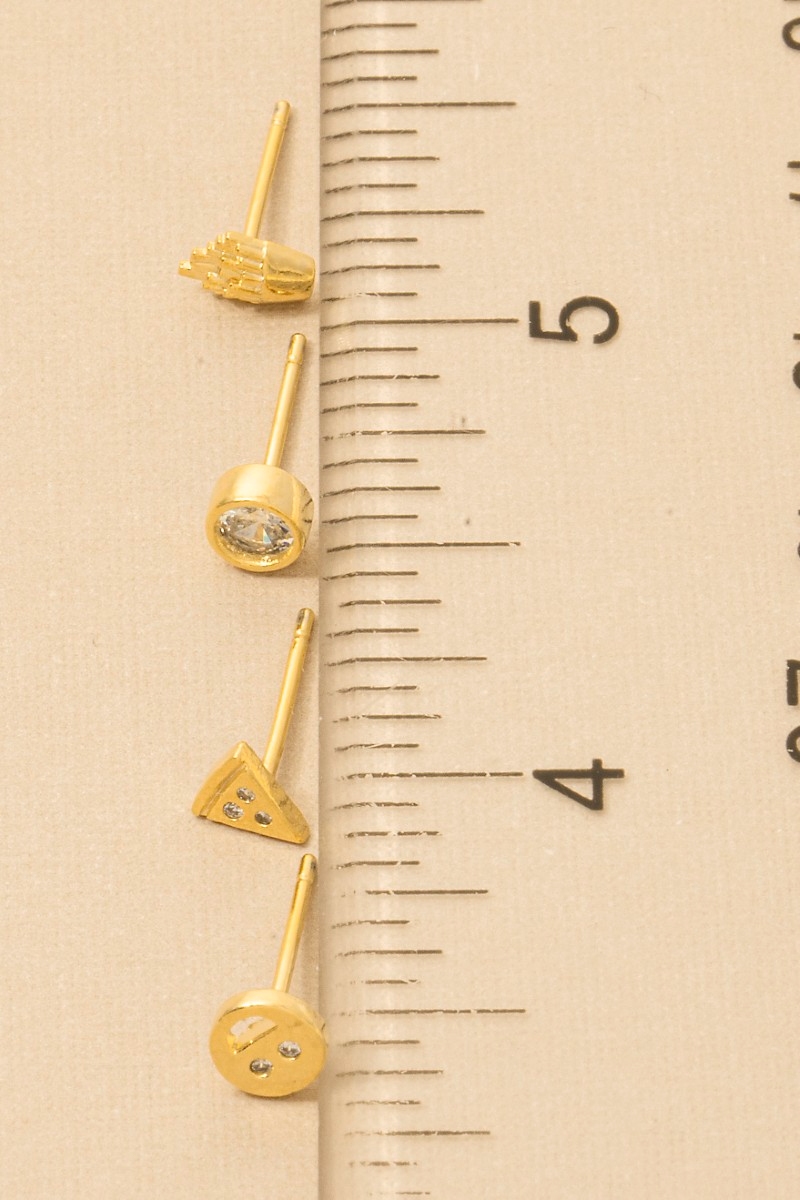 • This trending pair of earrings features a fashionable gold dipped assorted stud earrings set style. Explore a blend of classic charm and contemporary flair.