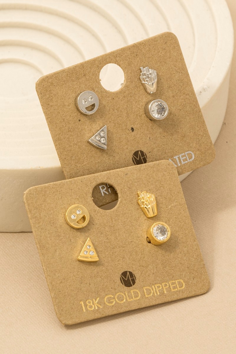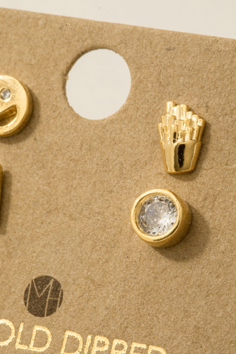 Secret Box Gold Dipped Mixed Shape Stud Earrings Set