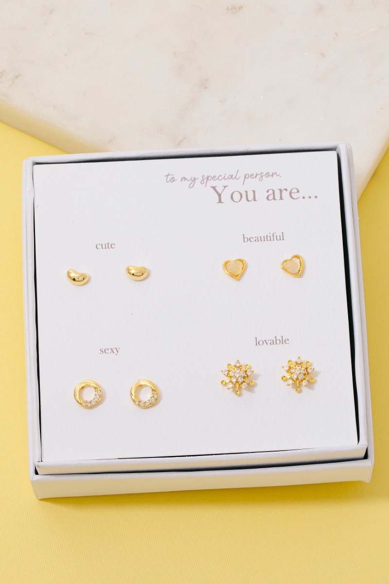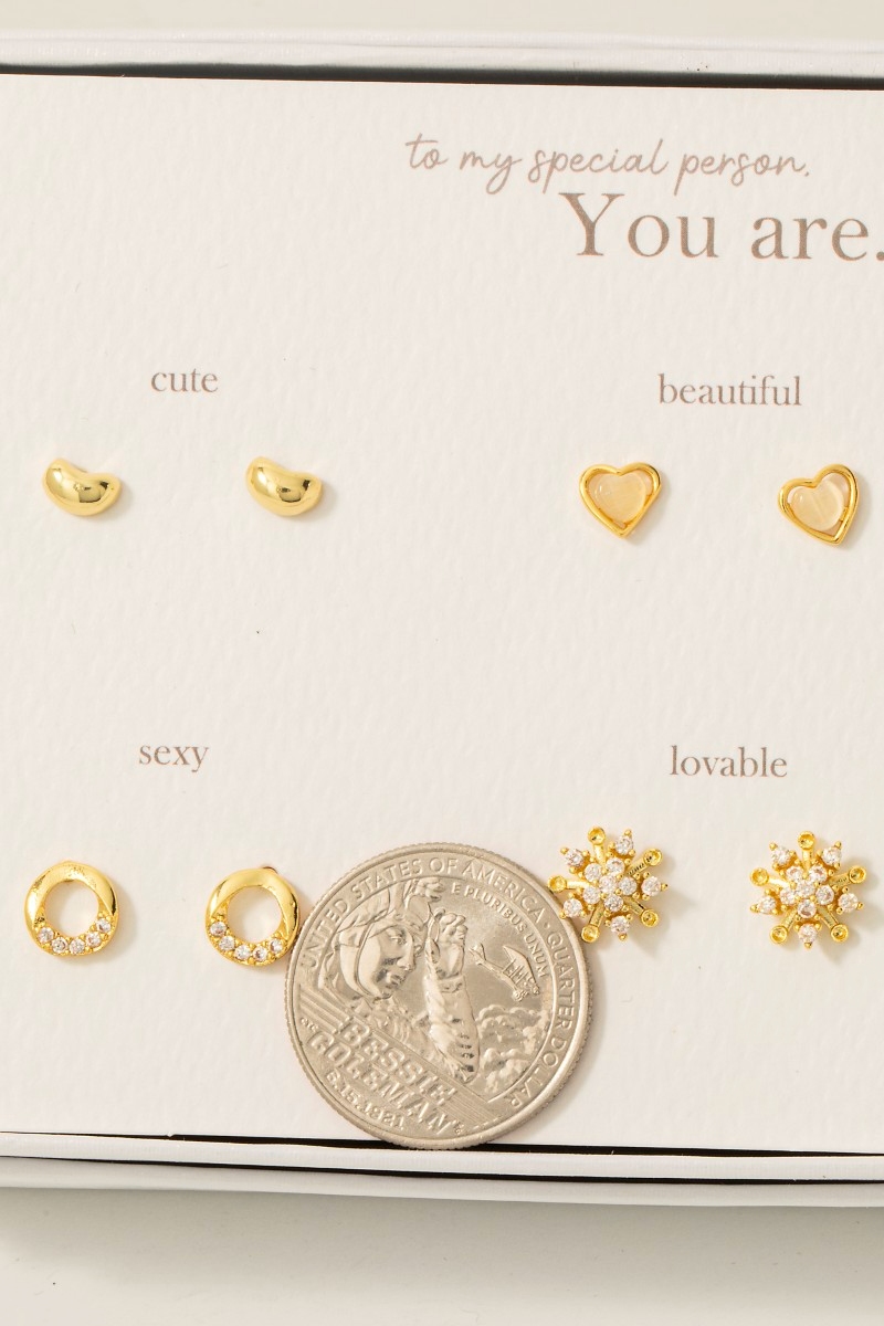 - This pair of stud earrings brings a unique gold dipped cluster and heart set style. Witness the transformative power of accessories as this piece effortlessly redefines your fashion narrative.