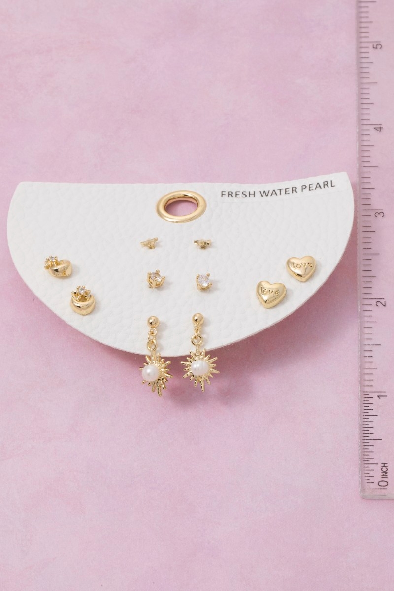Secret Box Gold Dipped Mixed Shape Stud Earrings Set