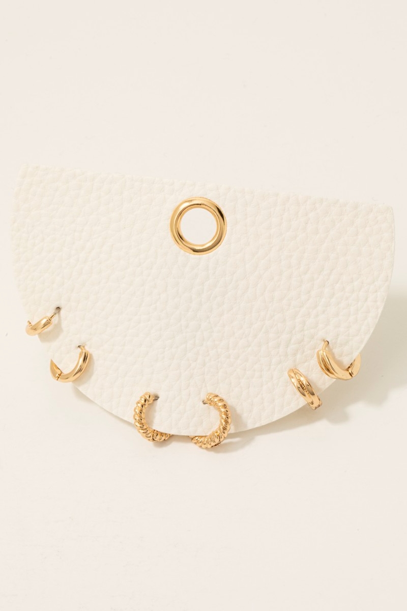 • This set of earrings features a fashionable mini assorted three pair hoop earrings set style. Unveil a new dimension of sophistication as this set of earrings effortlessly enhances the elegance of your ensemble.