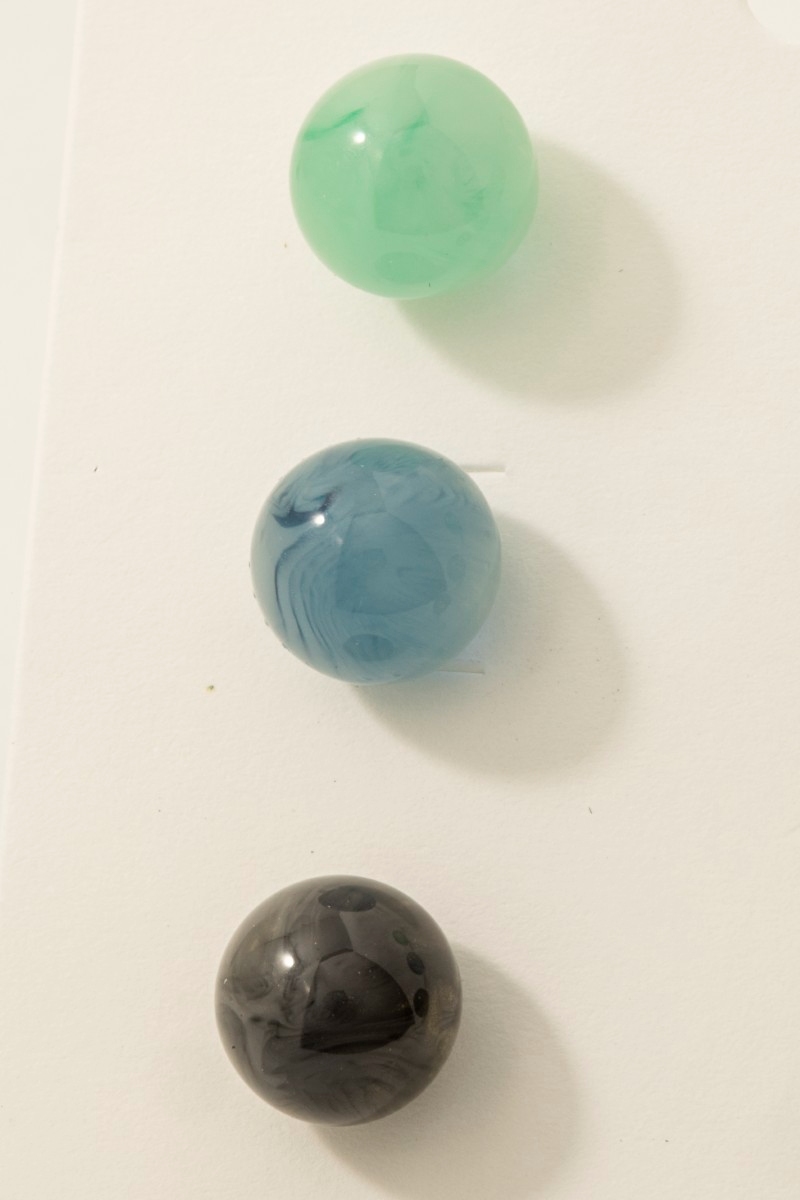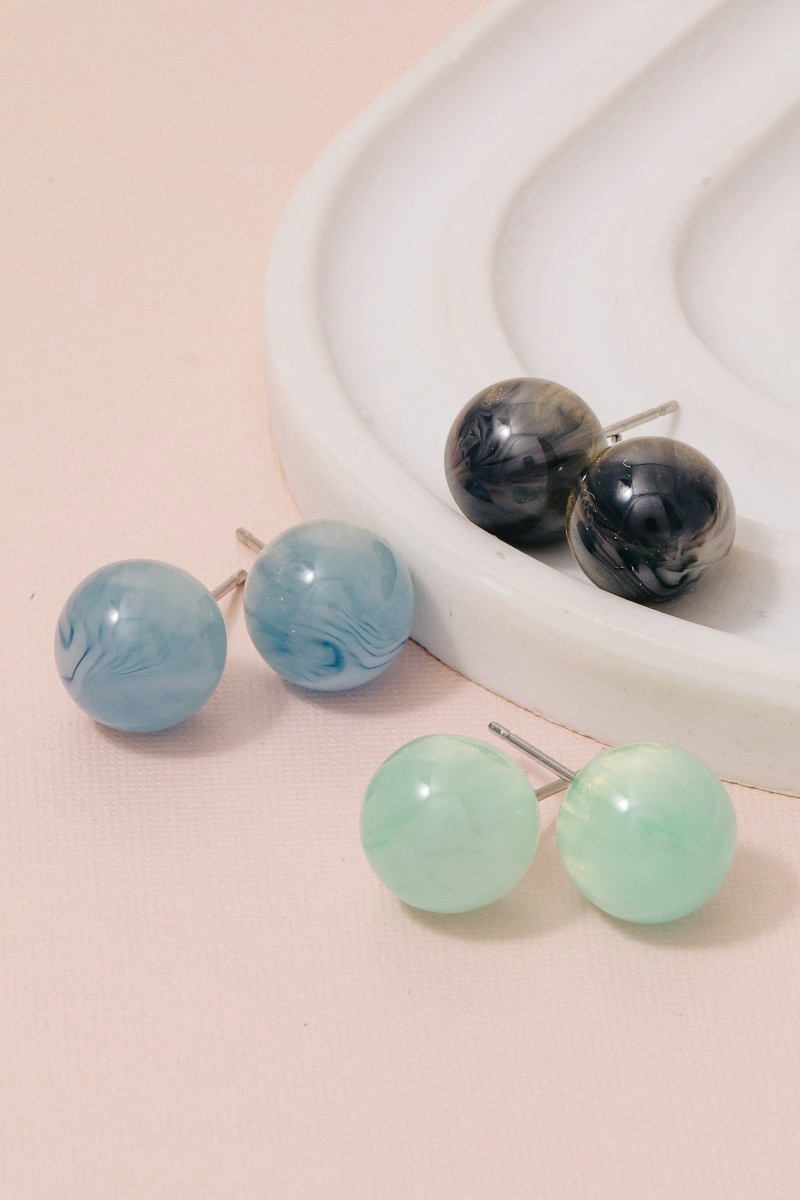 - This pair of stud earrings brings a stunning mixed acrylic ball set style. Indulge in the artistry of accessorizing with this unique piece.