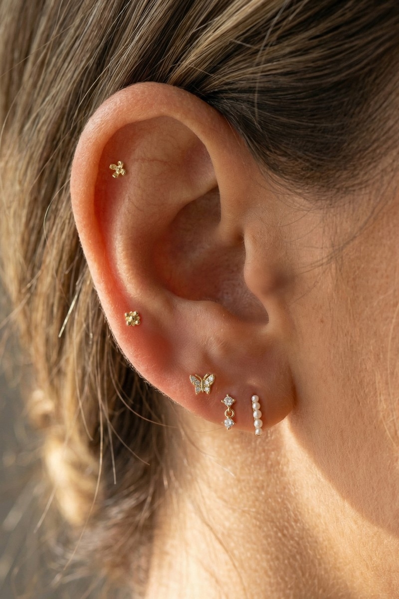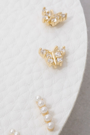- This pair of stud earrings introduces a unique mixed dainty set style. Unveil a new dimension of sophistication as this pair of stud earrings effortlessly enhances the elegance of your ensemble.