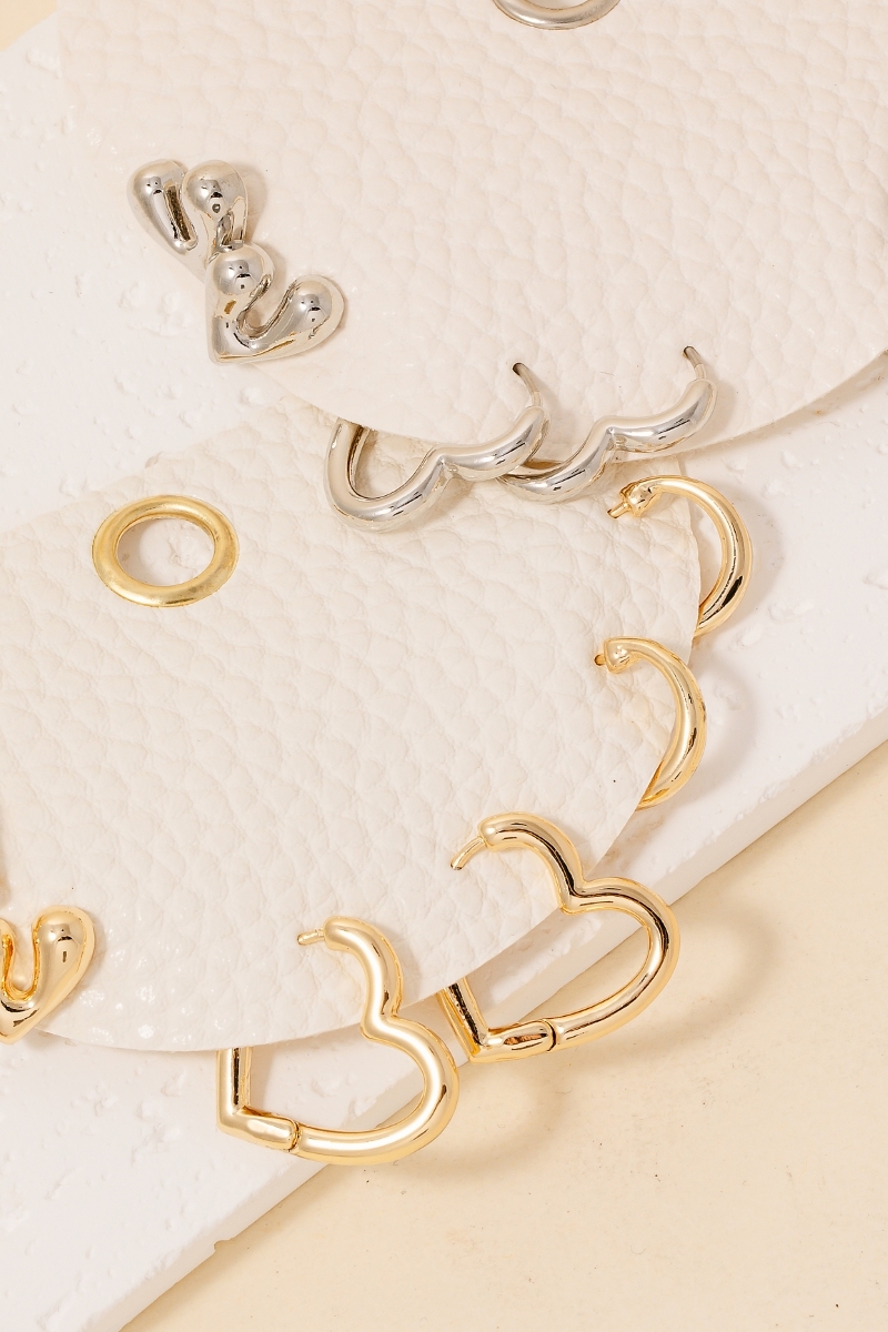 - This pair of earrings showcases a unique mixed metallic hearts set style. Celebrate the art of accessorizing with this piece that effortlessly encapsulates modern trends.