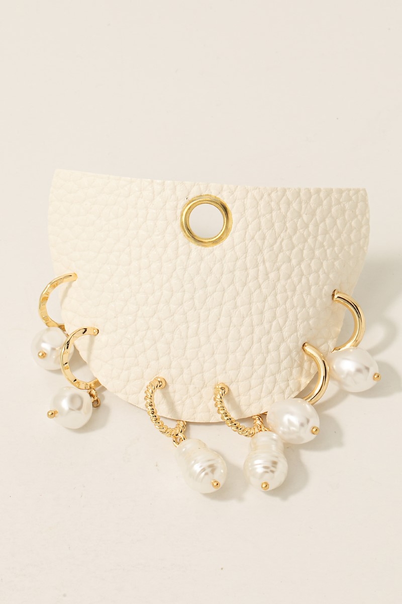 - This pair of hoop earrings displays a fashionable mixed pearl charm set style. Discover the perfect balance of subtlety and flair as this pair of hoop earrings effortlessly completes your look.