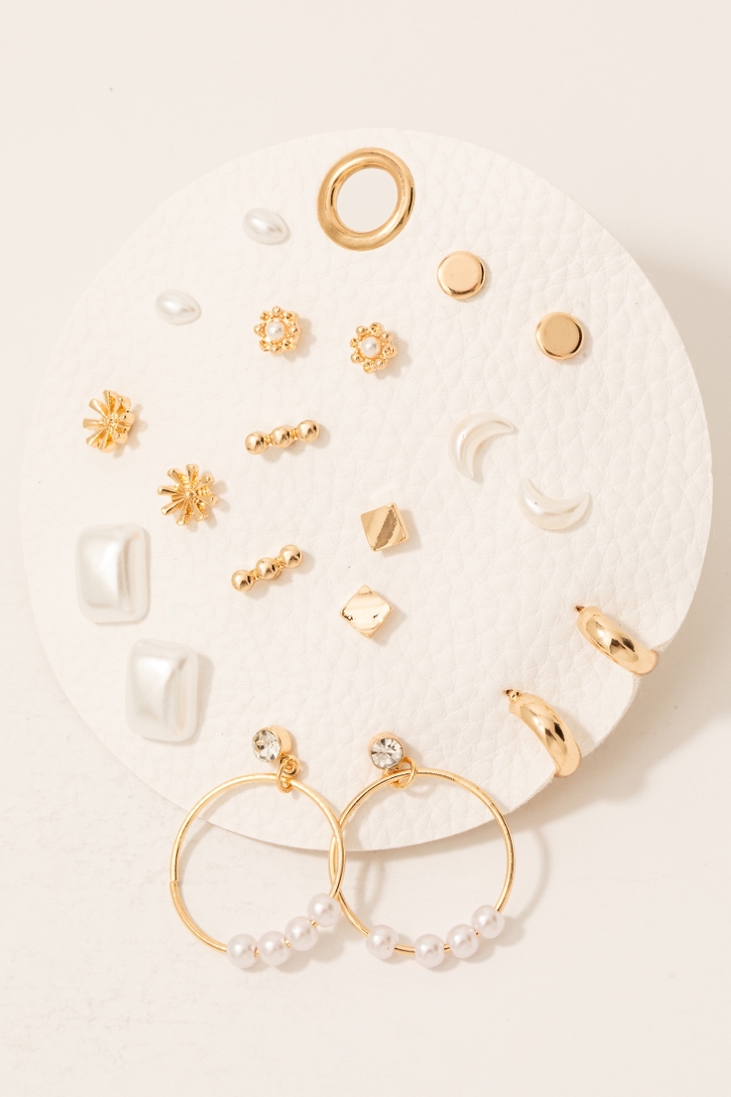 Assorted Pearl Hoop And Stud Earrings Set