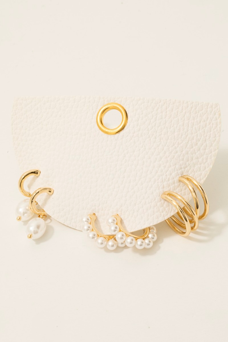 - This pair of hoop earrings displays a fashionable mixed pearl studs and charms set style. Experience a burst of creativity in accessorizing as this piece effortlessly sets the tone for your unique style.