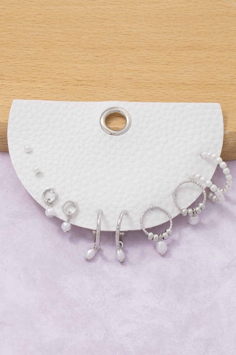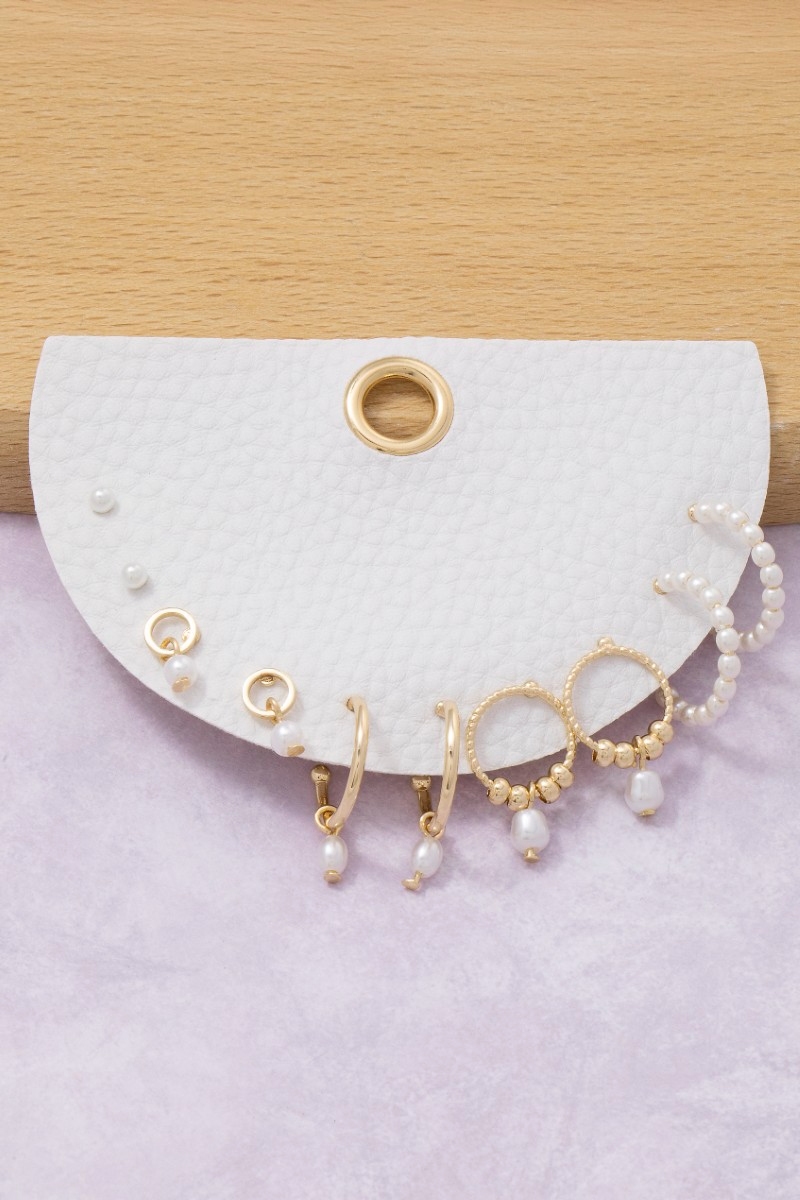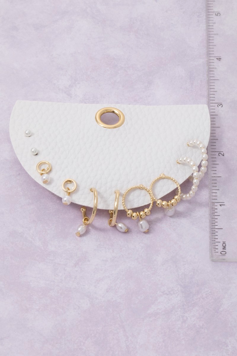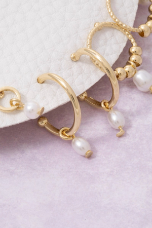 - This pair of earrings displays a fashionable mixed pearls stud and hoops set style. Experience a subtle blend of modernity and classic charm as this pair of earrings effortlessly adorns your ensemble.