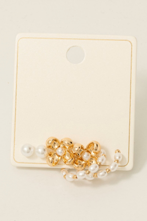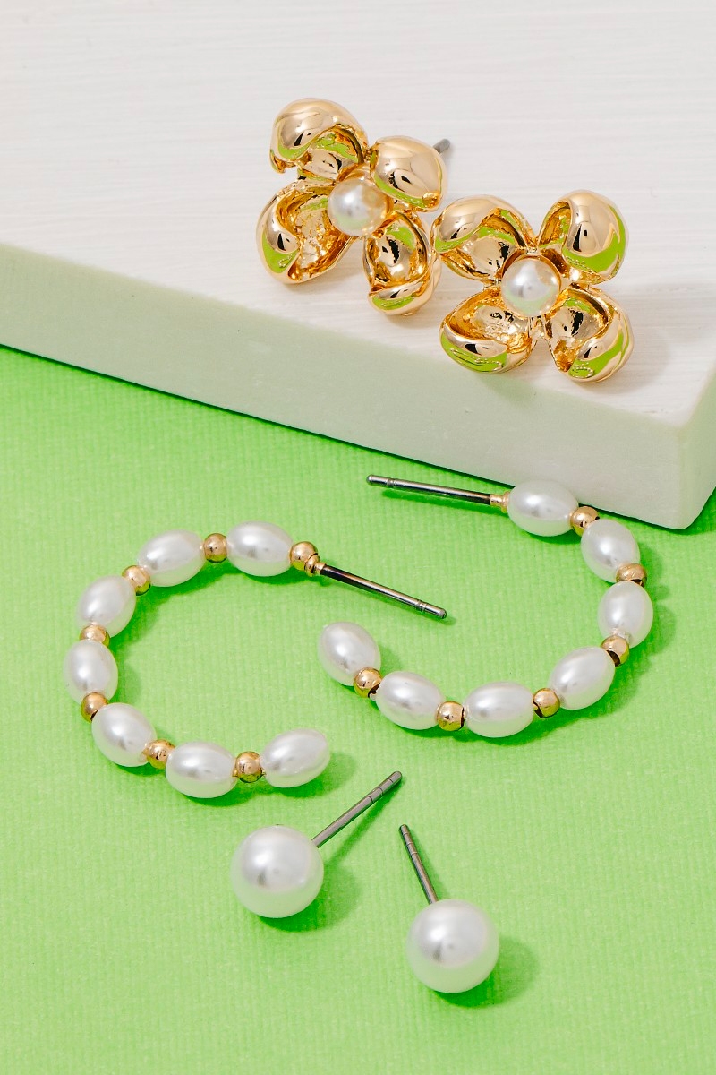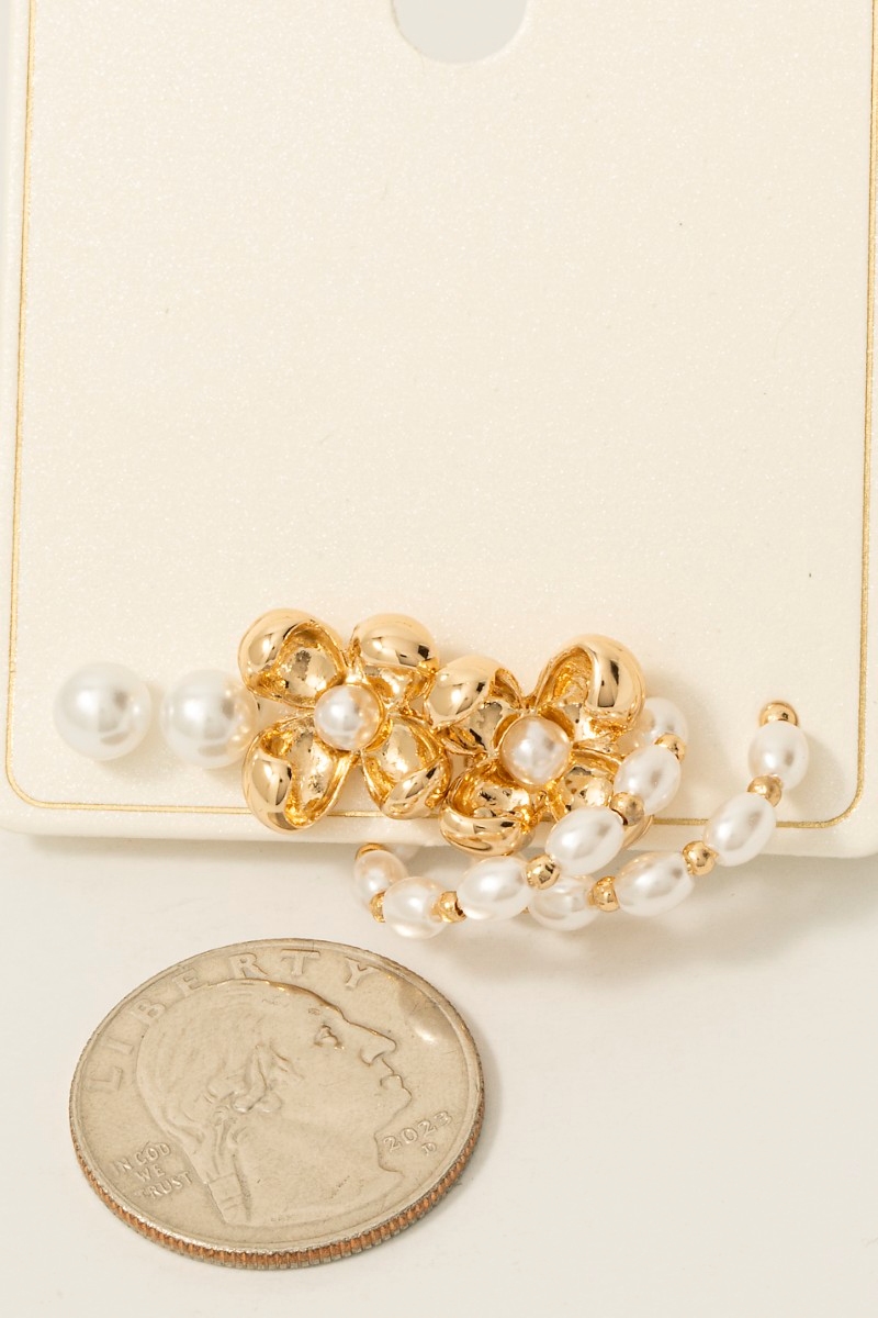 • This pair of hoop earrings brings a stunning pearl beads flower stud and set style. Indulge in the artistry of accessorizing with this unique piece.