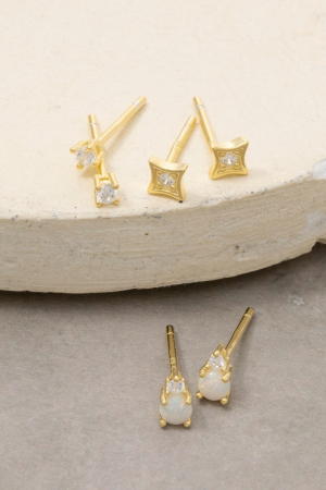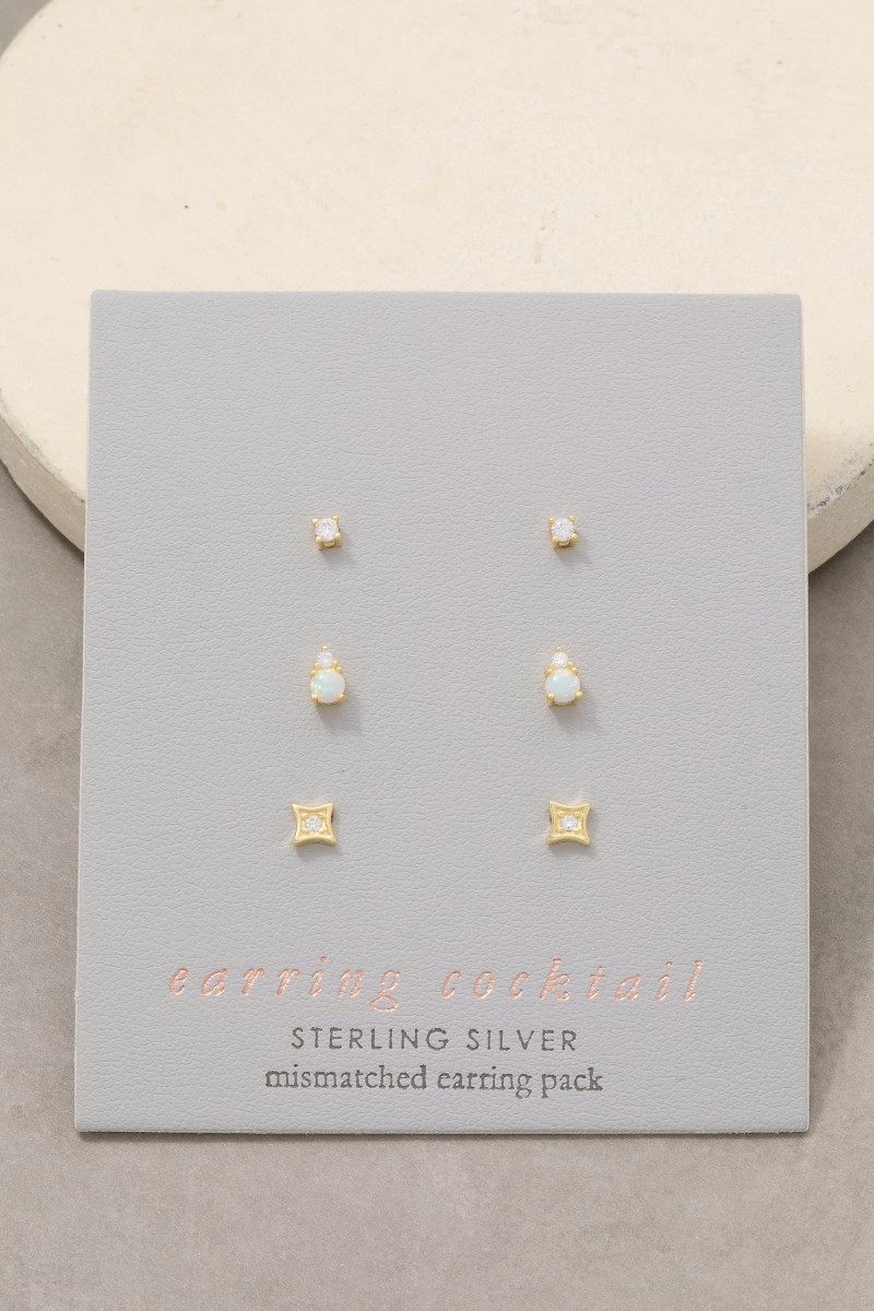 - This pair of stud earrings introduces a unique sterling silver opal set style. Experience refined sophistication with this understated yet stylish piece.