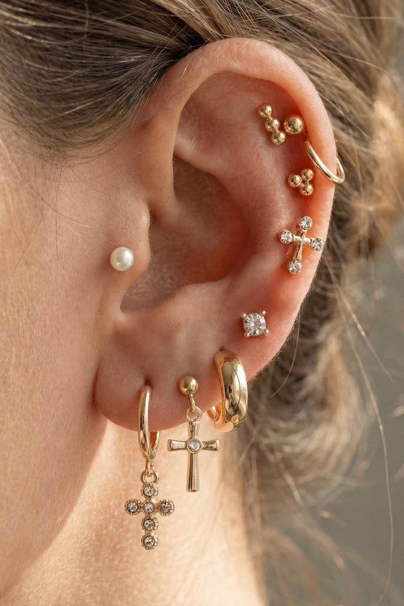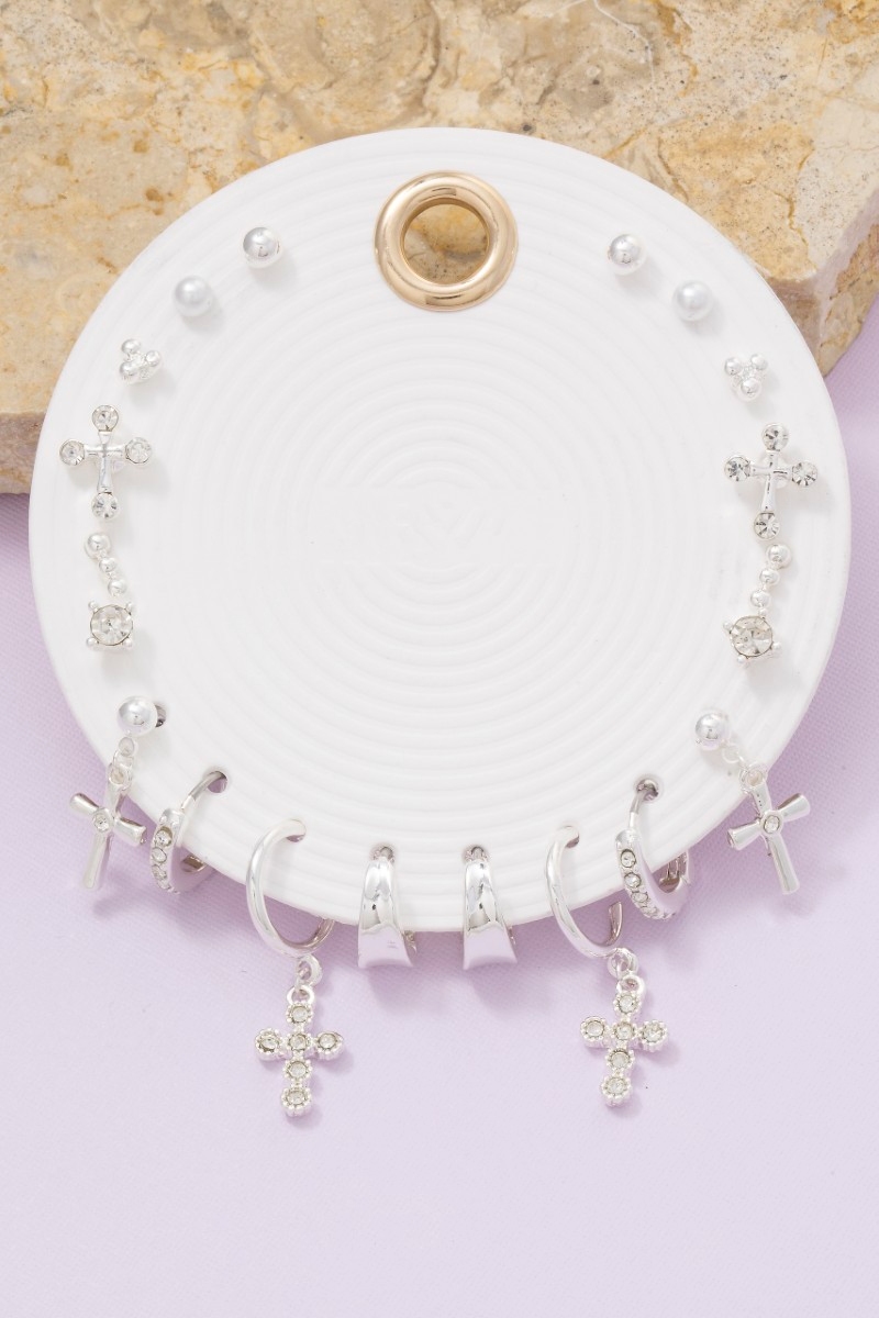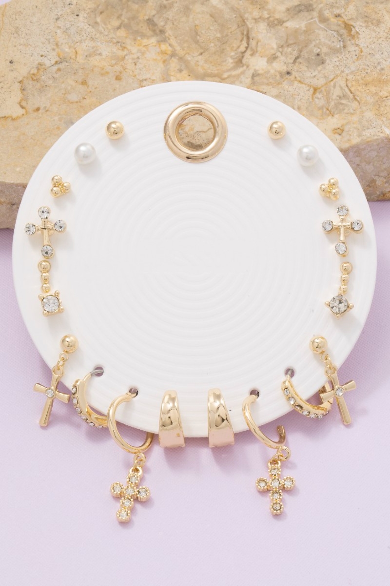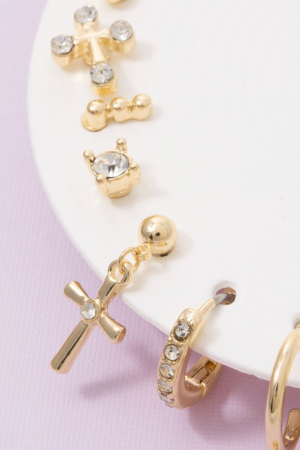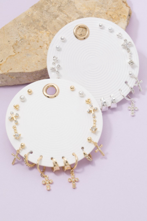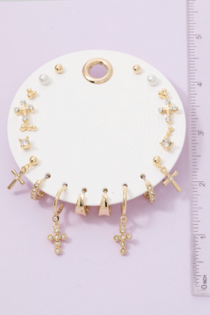 • This pair of earrings introduces a unique ten piece assorted cubic zirconia cross set style. Immerse yourself in the details of design, as this pair of earrings effortlessly becomes a conversation starter.