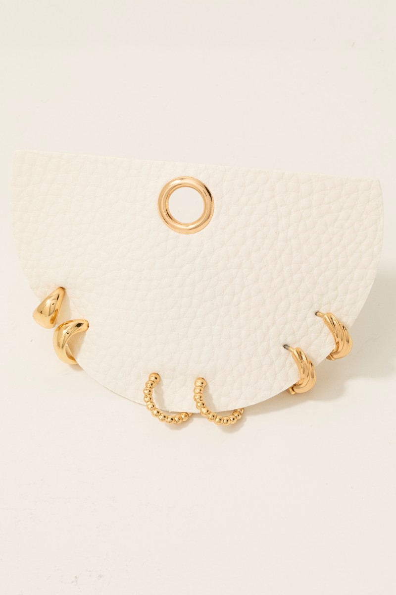 - This set of earrings introduces a stunning textured three pair mini hoop earrings set style. Experience a subtle blend of modernity and classic charm as this set of earrings effortlessly adorns your ensemble.