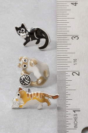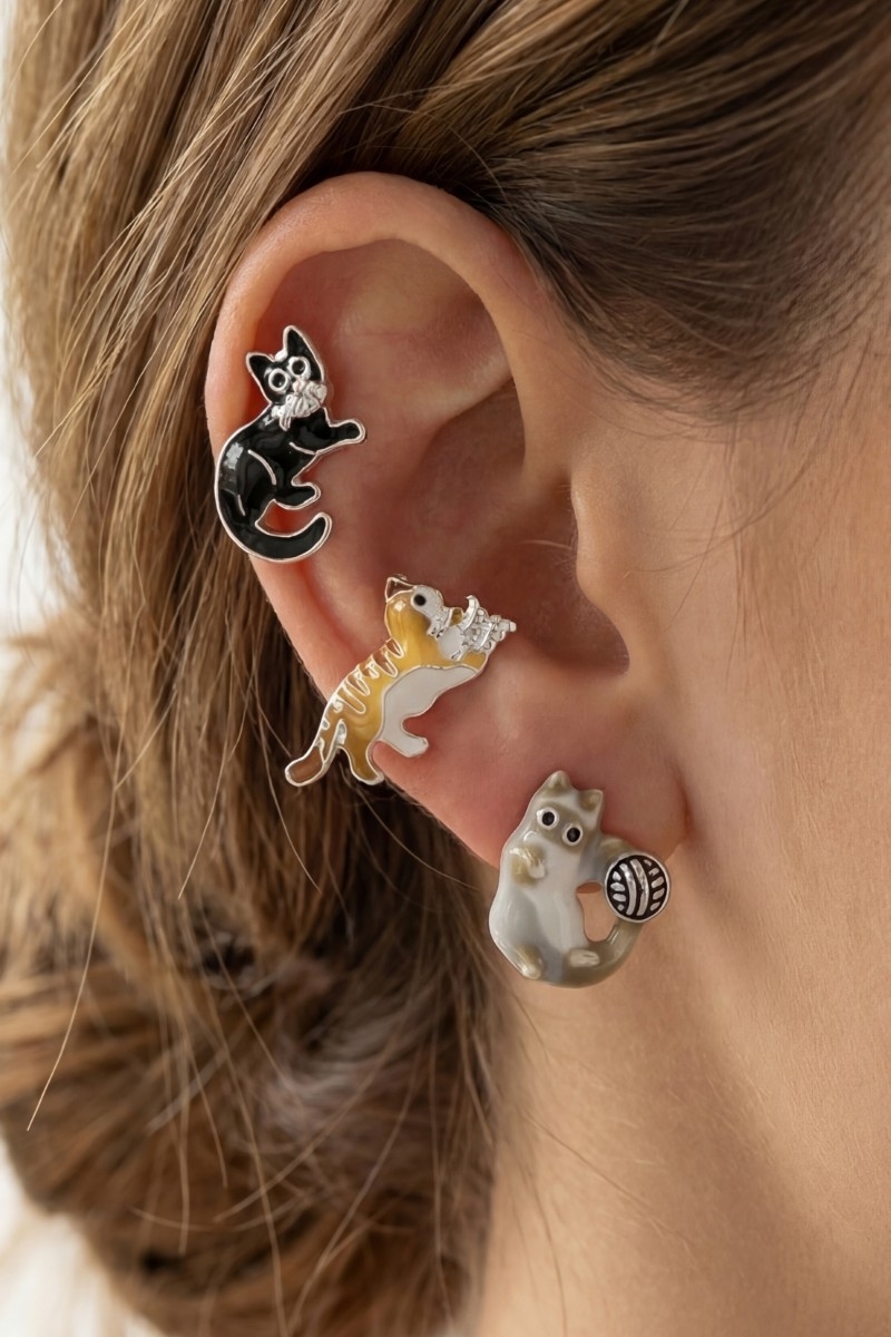 - This pair of earrings introduces a stunning enamel cat trio stud earring set style. Indulge in the artistry of accessorizing with this unique piece.