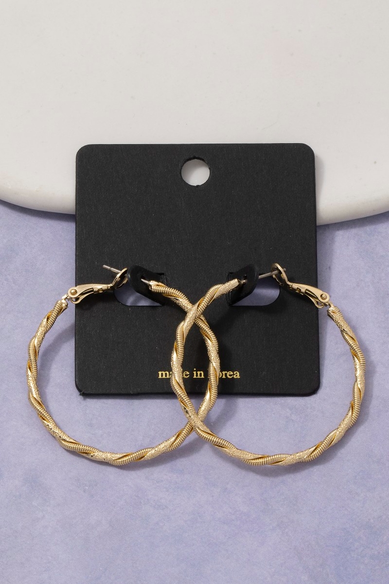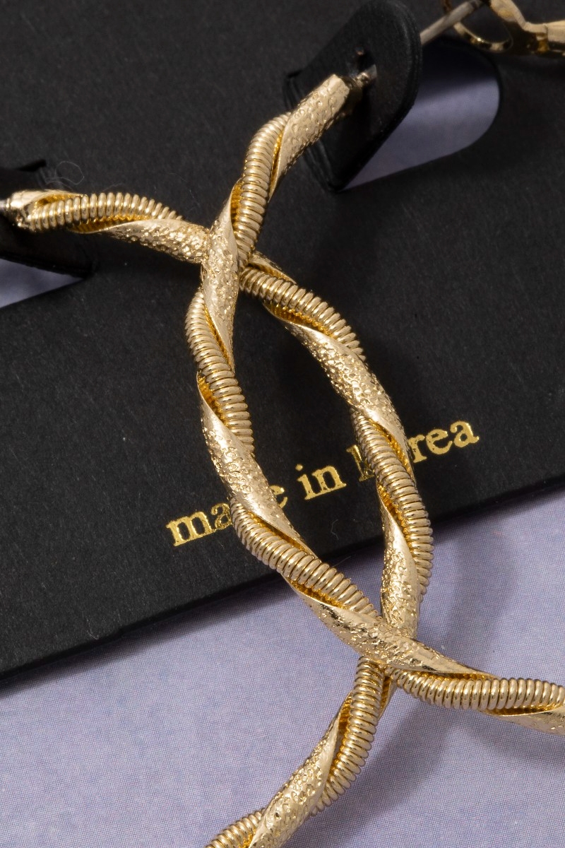 • This pair of hoop earrings displays a vibrant fine twisted rope large style. Step into a world of refined taste as this pair of hoop earrings effortlessly refines the details of your outfit.