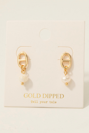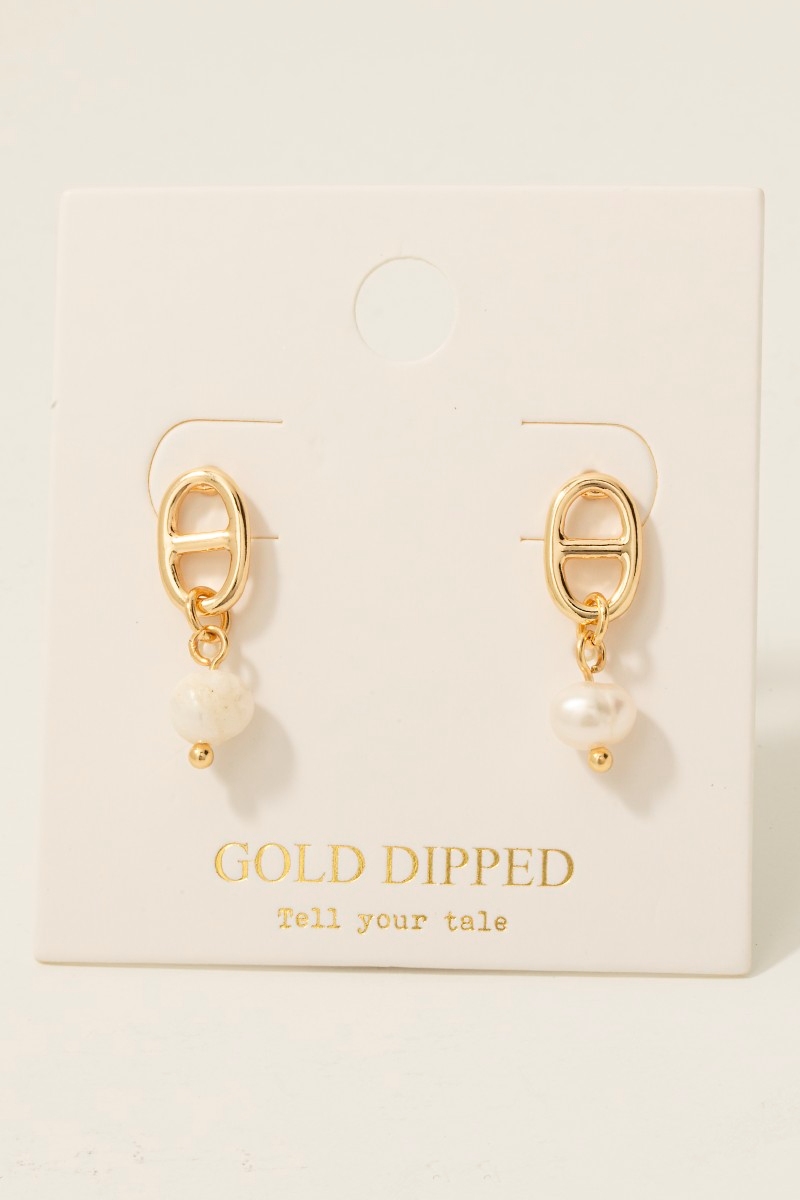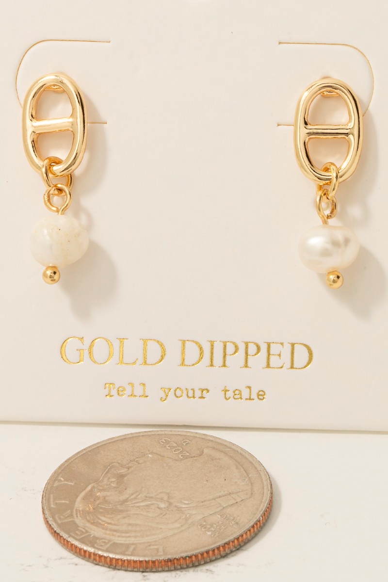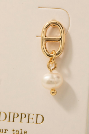 • This pair of stud earrings introduces a stunning gold dipped anchor chain and pearl charm style. Celebrate individuality with this pair of stud earrings that effortlessly expresses your unique sense of style.