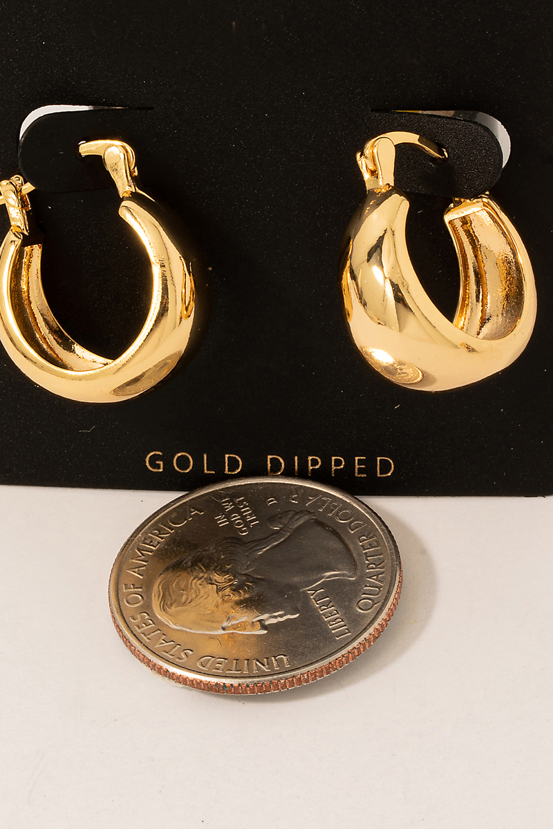 - This pair of hoop earrings displays a vibrant gold dipped beveled latch style. Savor the allure of detailed craftsmanship in this exquisite accessory.