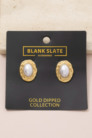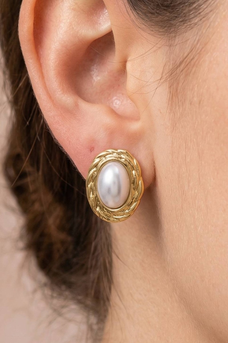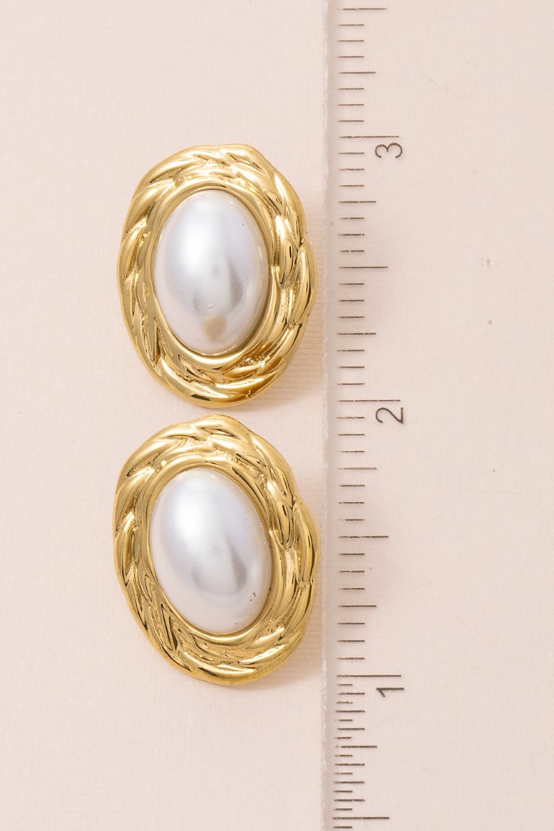 - This pair of stud earrings brings a luxurious gold dipped braided oval frame pearl center style. Immerse yourself in the details of design, as this pair of stud earrings effortlessly becomes a conversation starter.