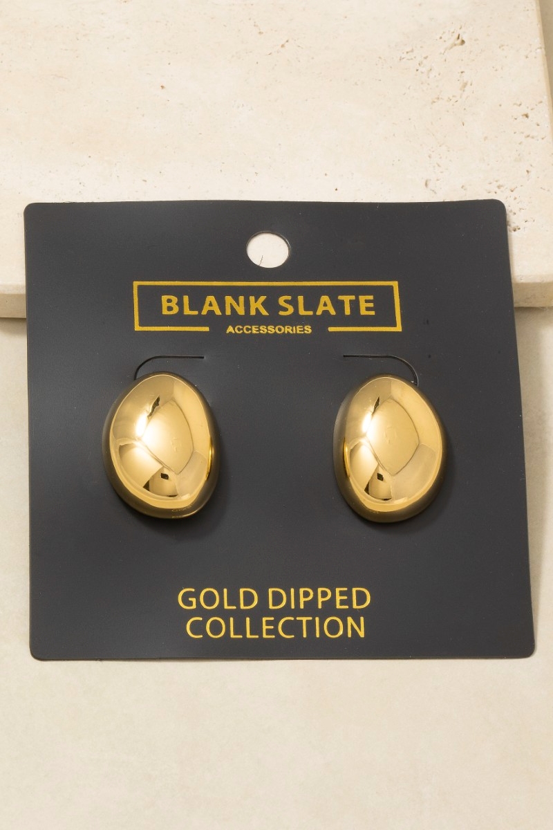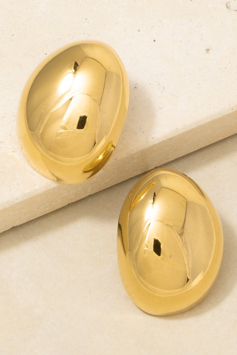 - This pair of stud earrings introduces a stunning gold dipped chunky oval dome style. Experience a burst of creativity in accessorizing as this piece effortlessly sets the tone for your unique style.