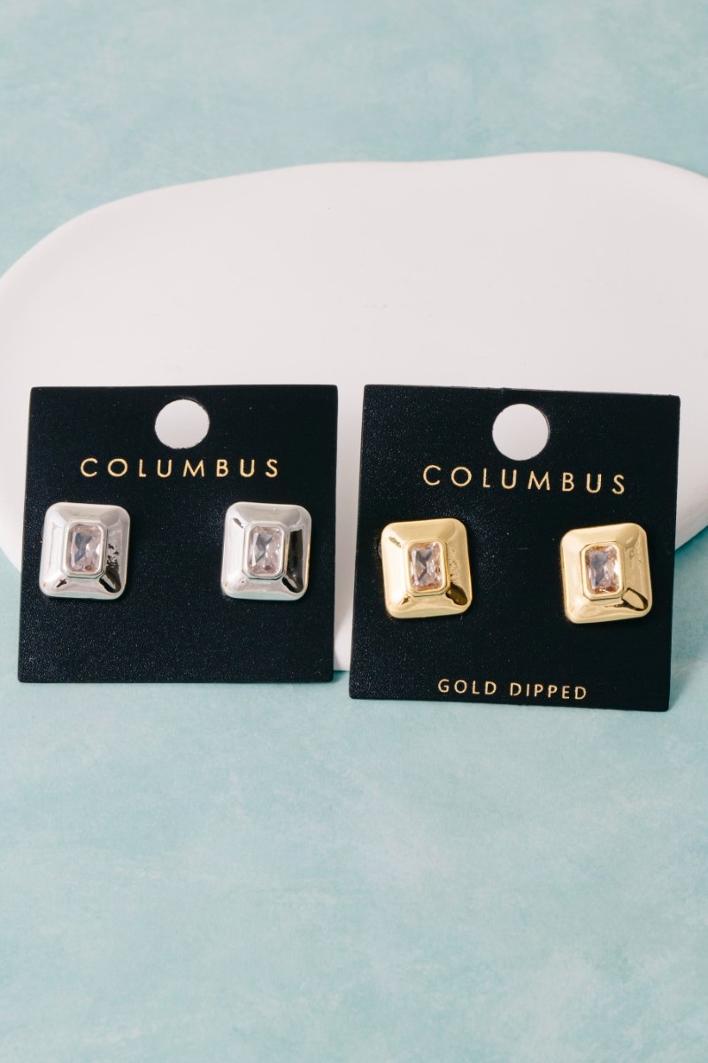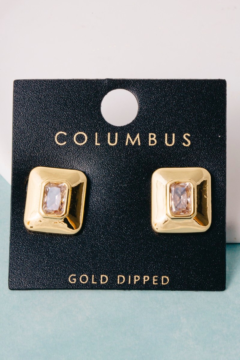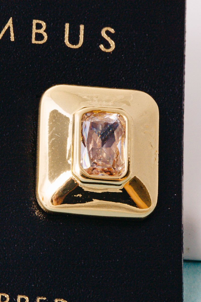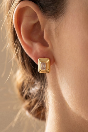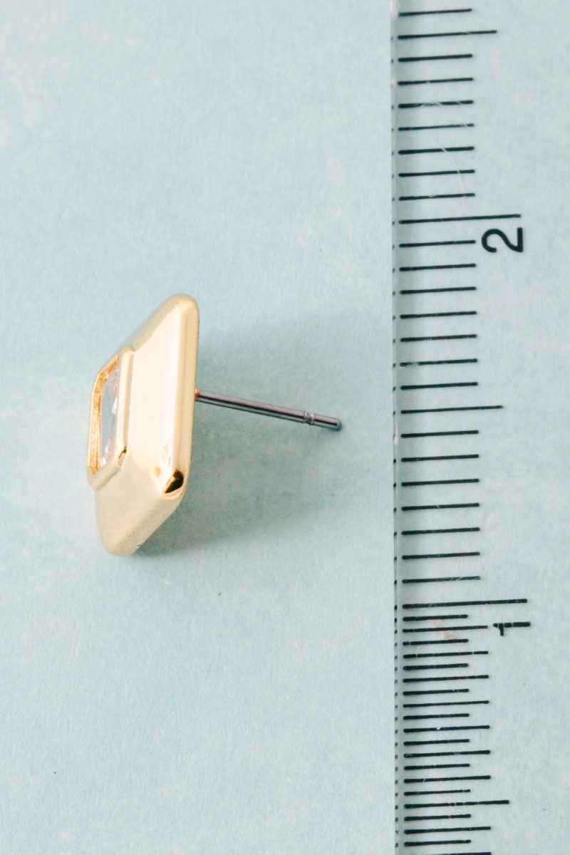 • This pair of stud earrings brings a stunning gold dipped chunky square baguette style. Delight in the intricate details that make this pair of stud earrings an essential element in expressing your fashion identity.