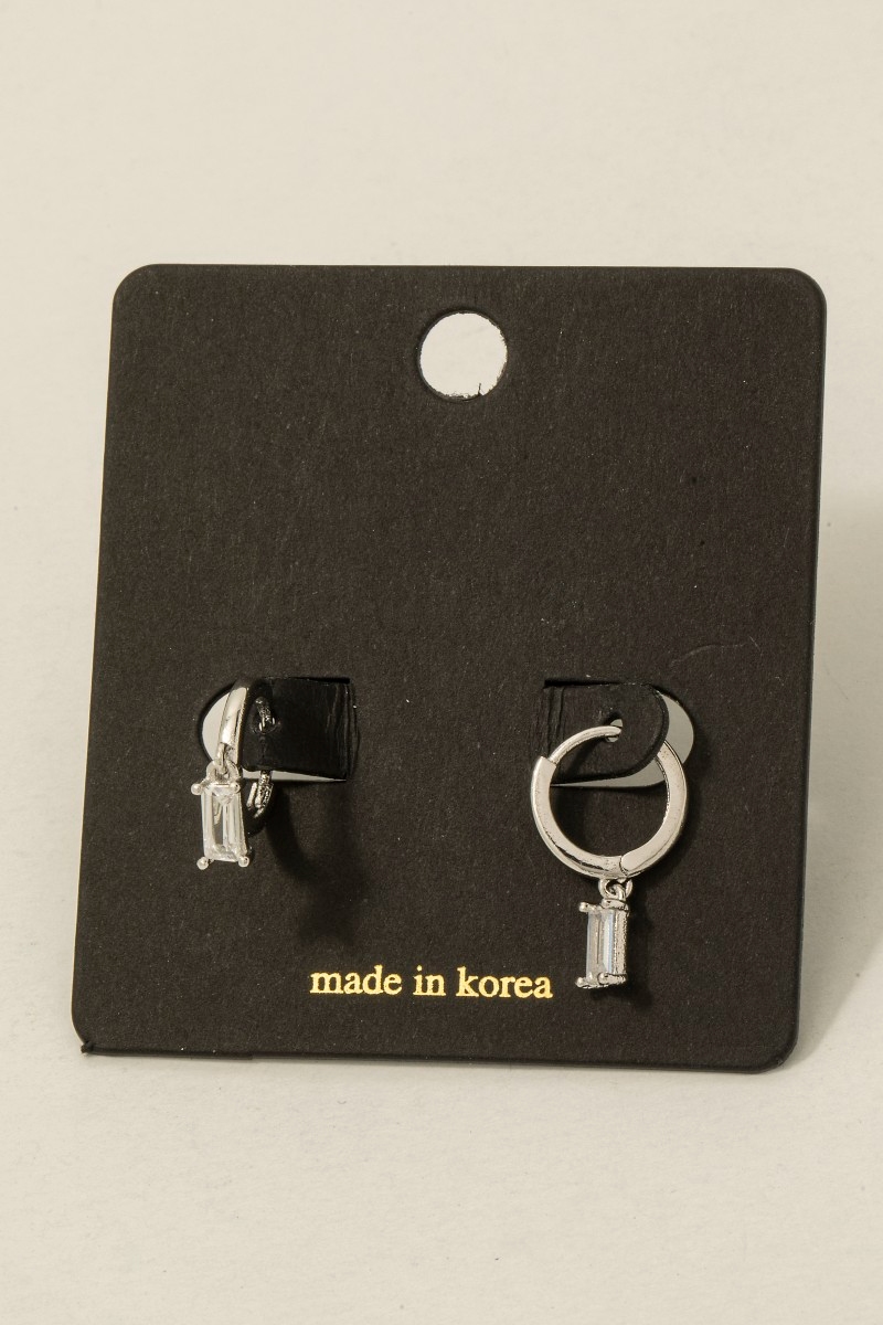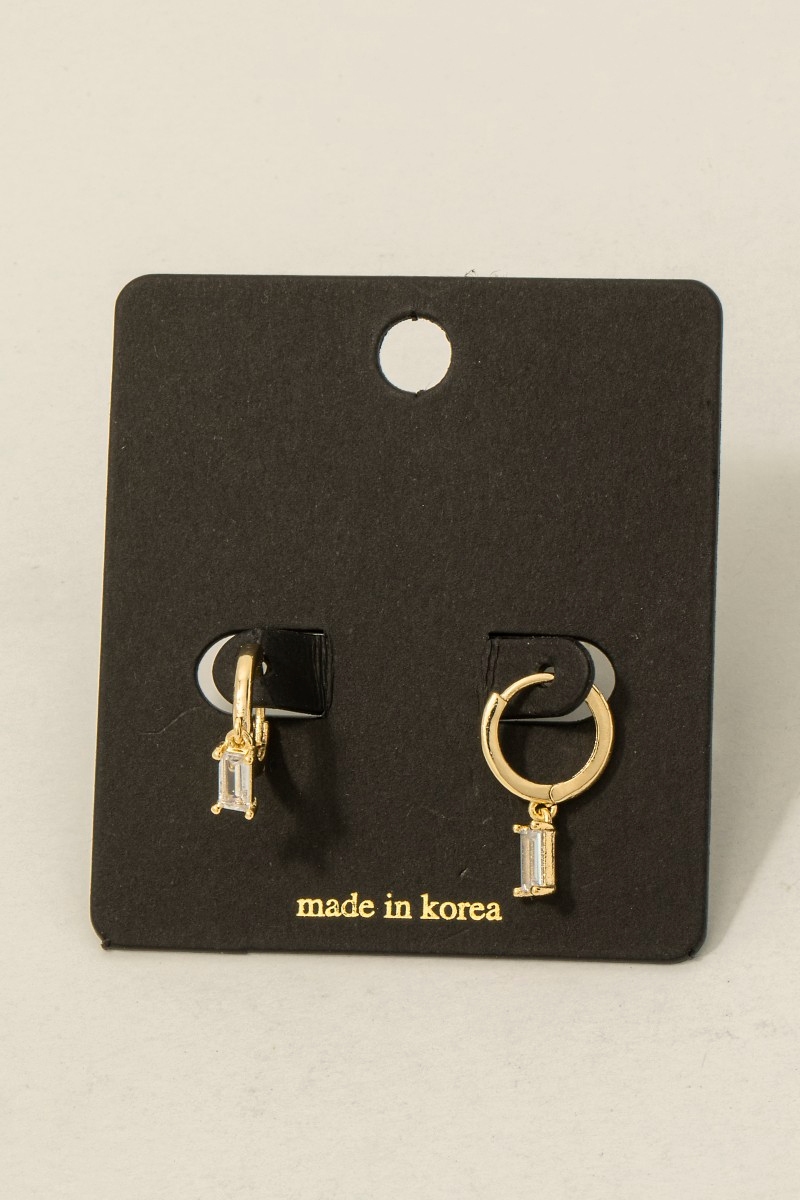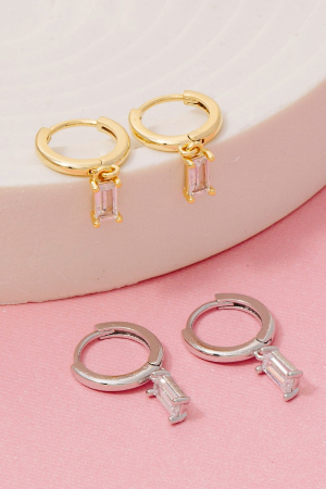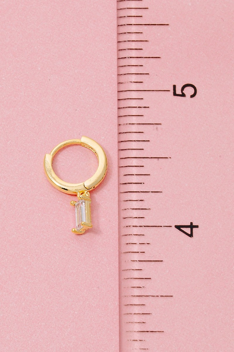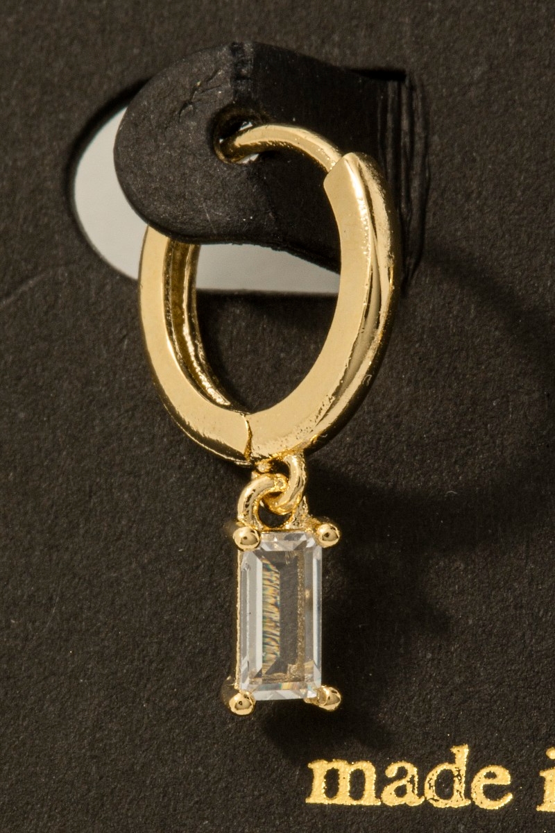 - This pair of hoop earrings showcases a timeless gold dipped cubic zirconia baguette charm style. Delight in the nuanced details that make this pair of hoop earrings a testament to fine design and impeccable taste.