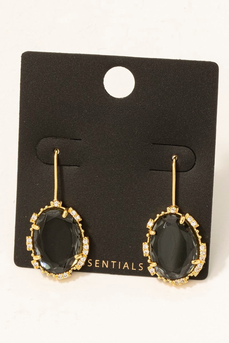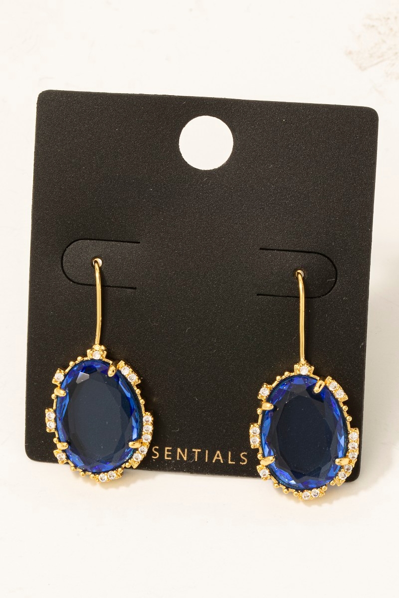 Gold Dipped Cz And Glass Oval Gem Dangle Earrings