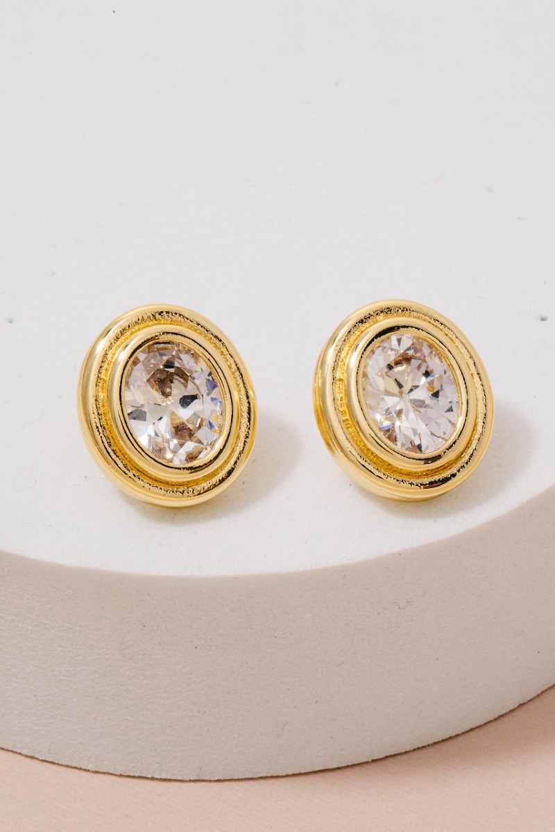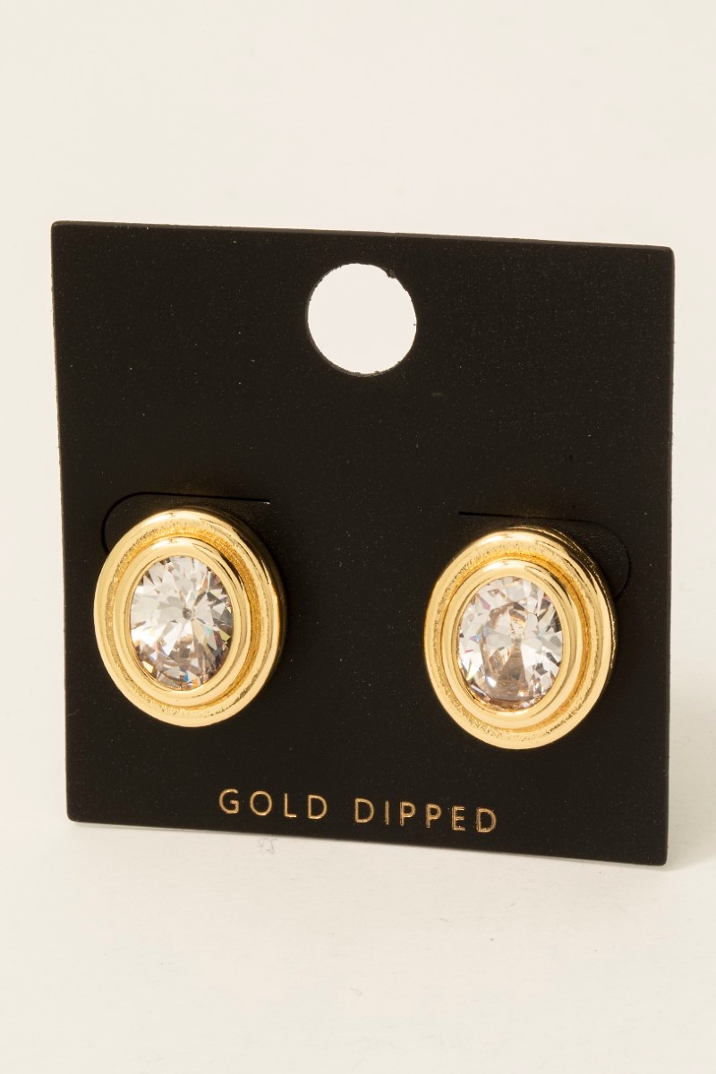 - this pair of columbus jewelry stud earrings adds a modern gold dipped cubic zirconia oval set style. Discover the perfect balance of subtlety and flair as this pair of columbus jewelry stud earrings effortlessly completes your look.