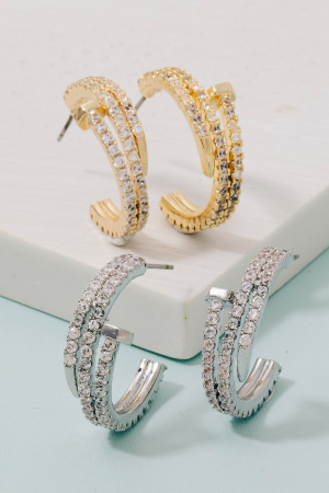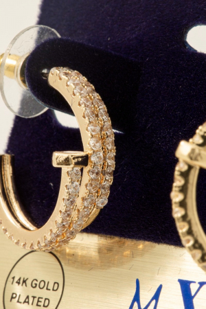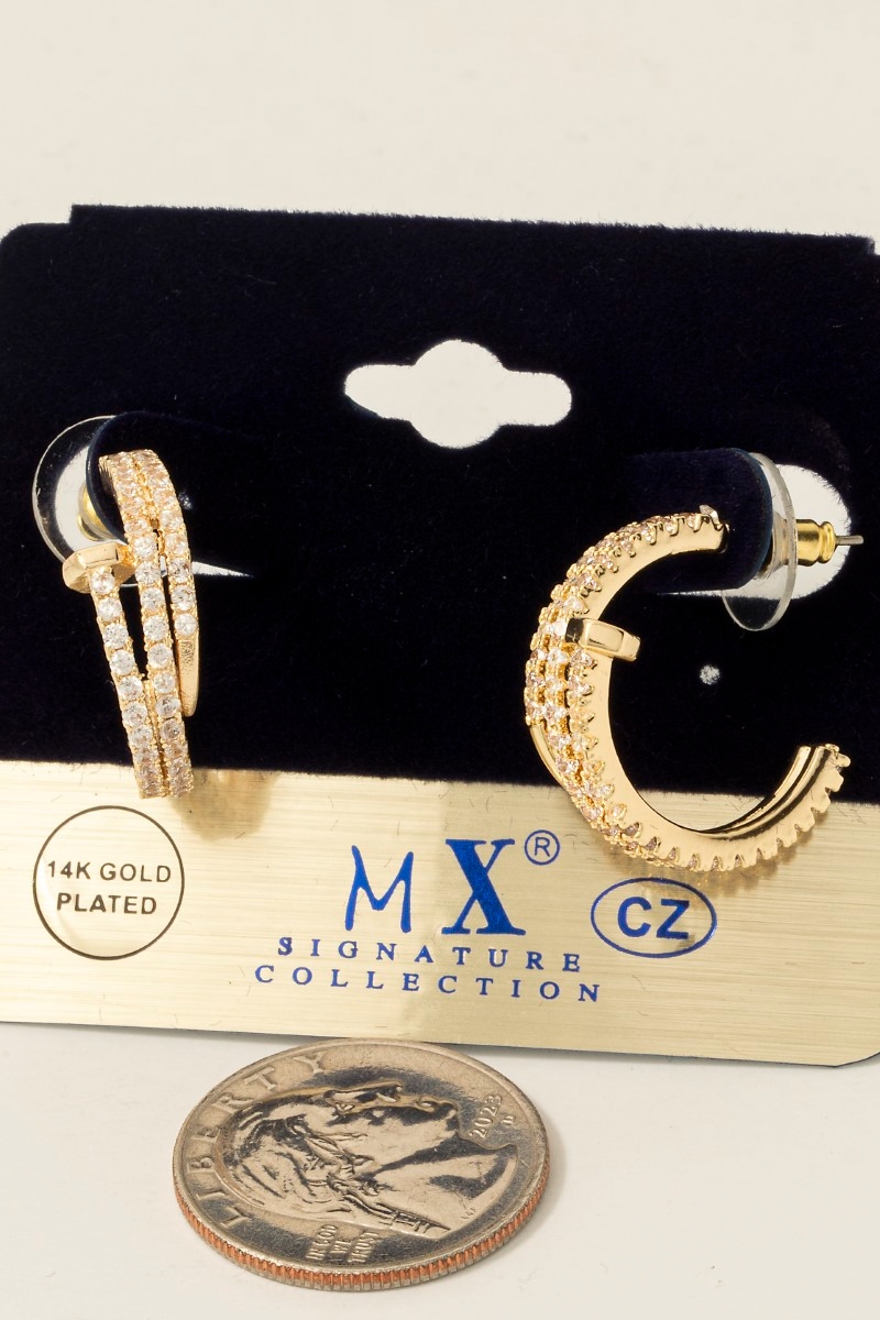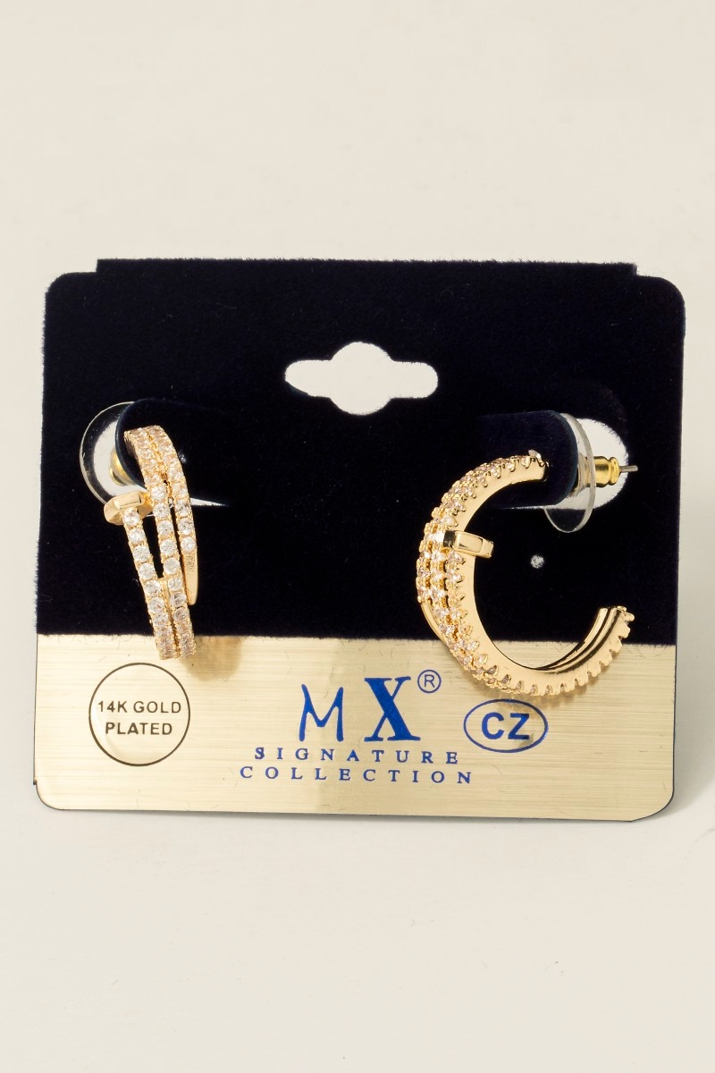 - This pair of hoop earrings introduces a unique gold dipped cubic zirconia pave layered nail style. Elevate your ensemble with this chic, timeless pair of hoop earrings.