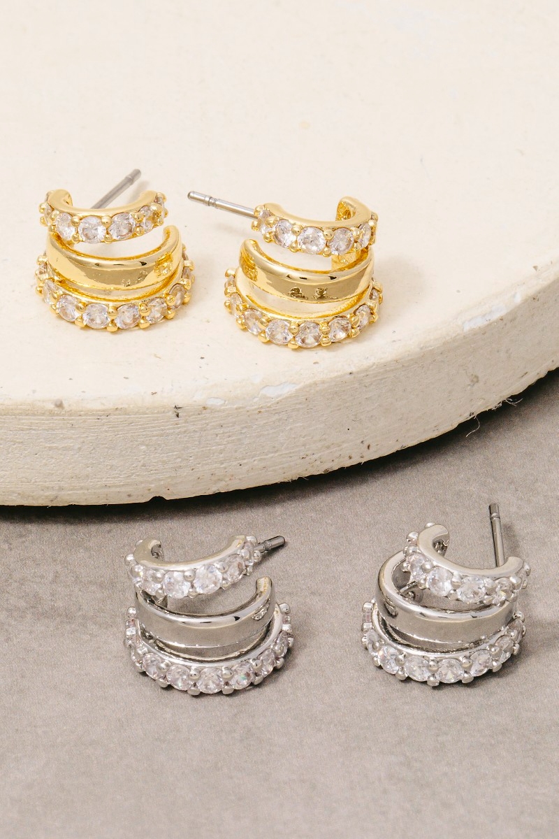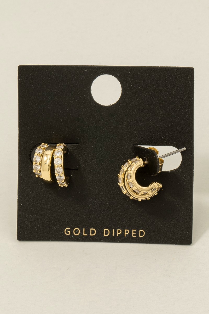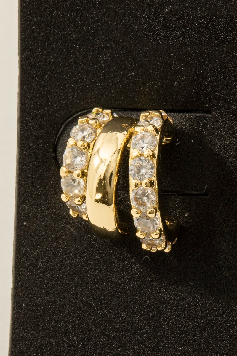 - This pair of hoop earrings brings a luxurious gold dipped cubic zirconia pave wide layered style. Savor the allure of detailed craftsmanship in this exquisite pair of hoop earrings.