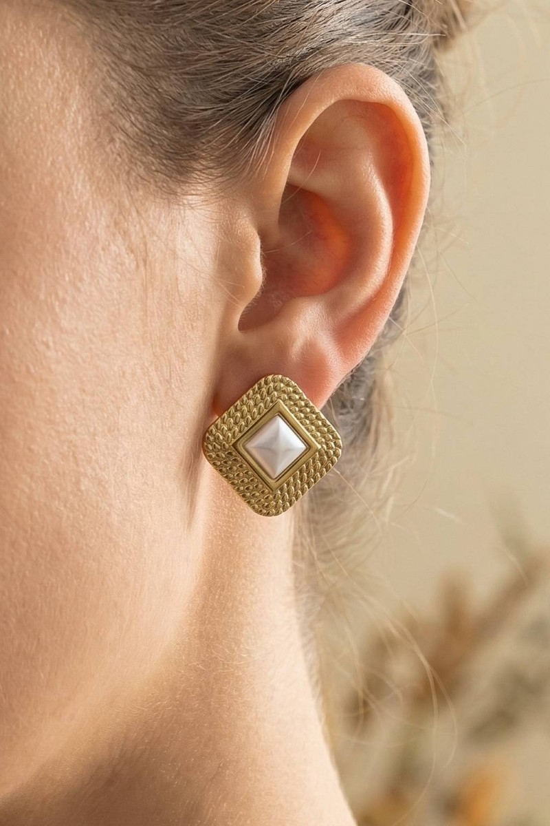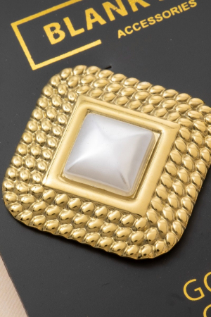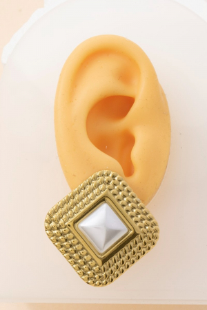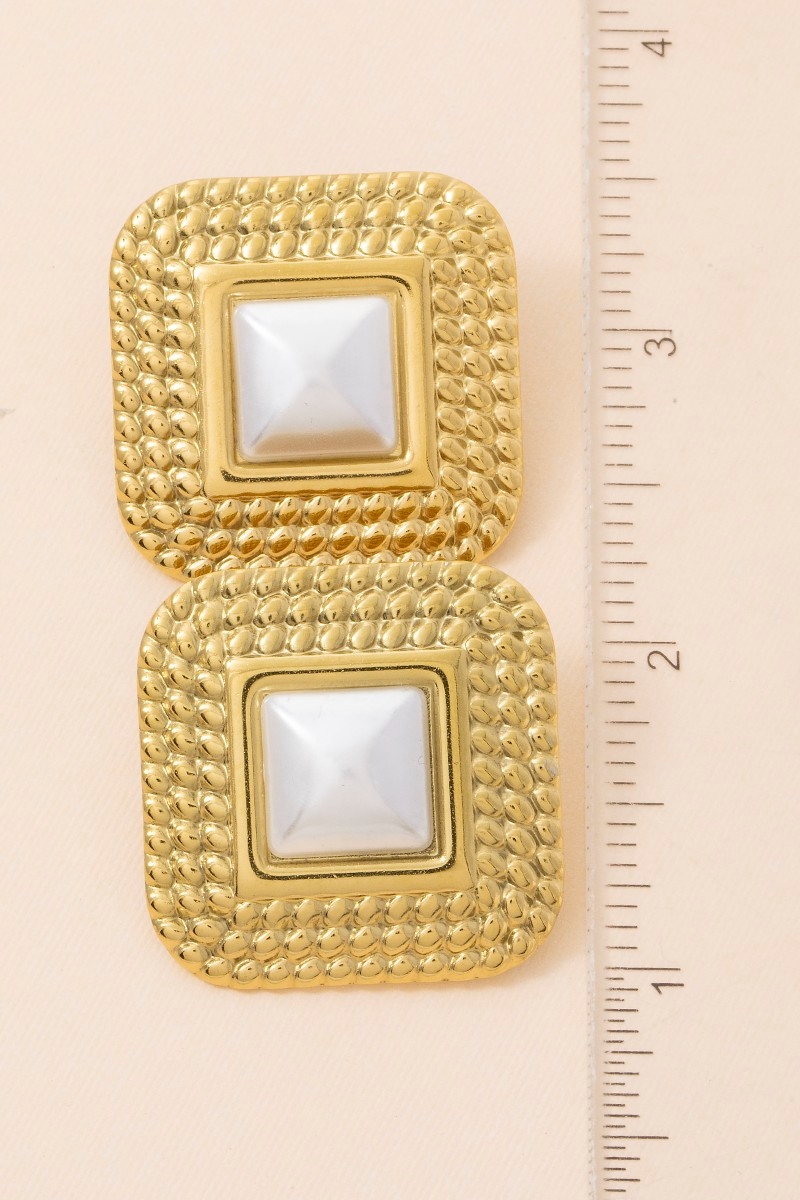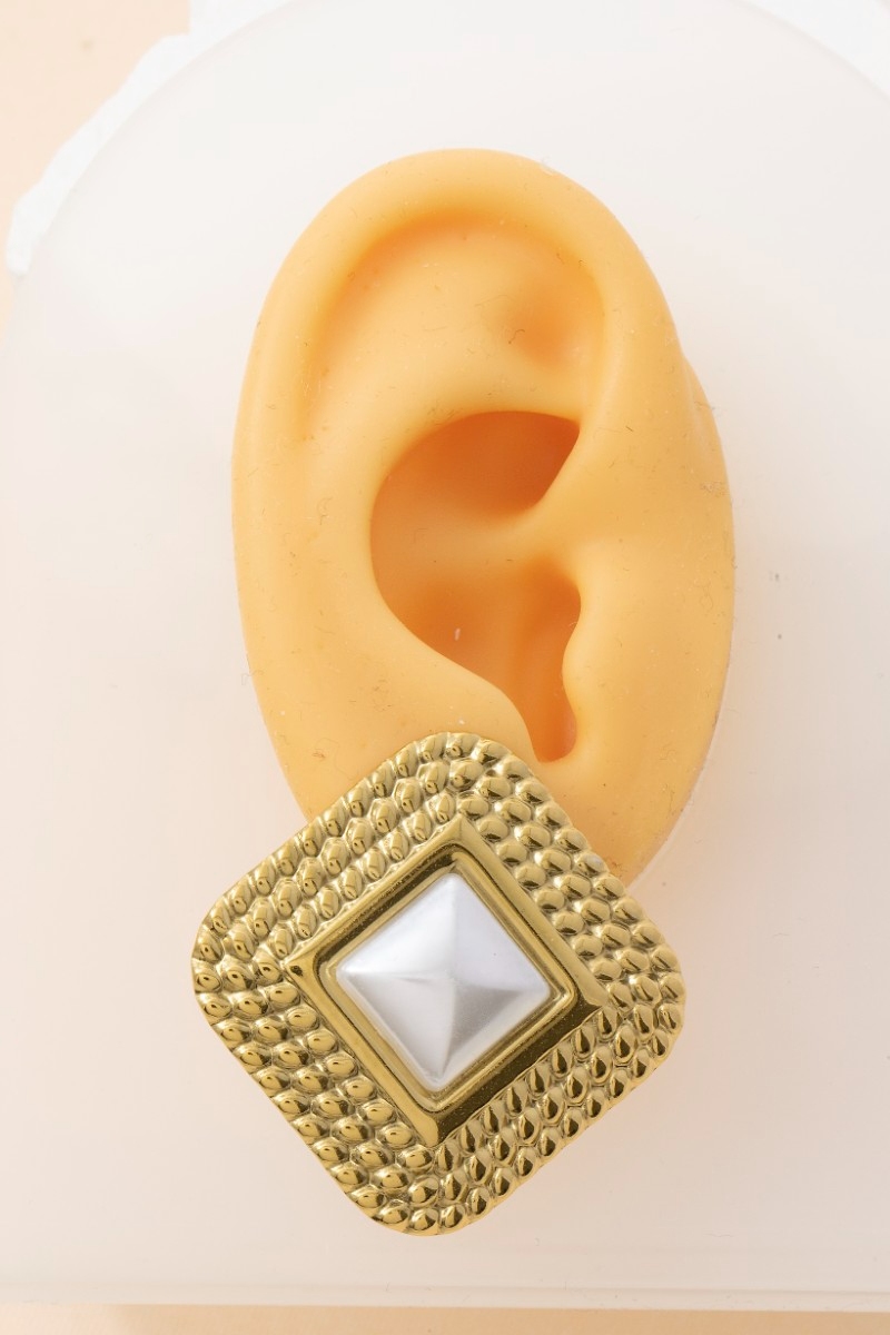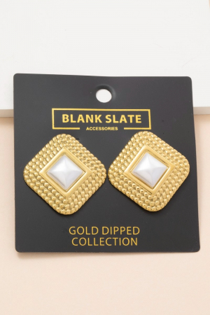- This pair of stud earrings brings a unique gold dipped dotted square pearl center style. Witness the transformative power of accessories as this piece effortlessly redefines your fashion narrative.