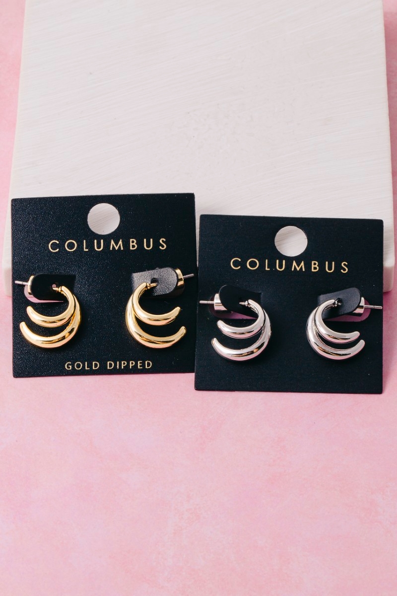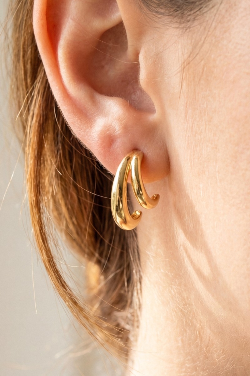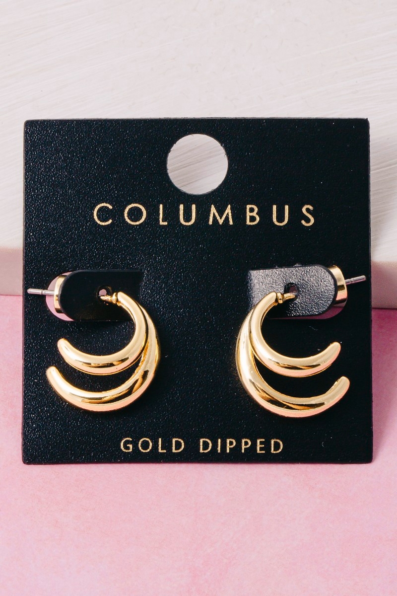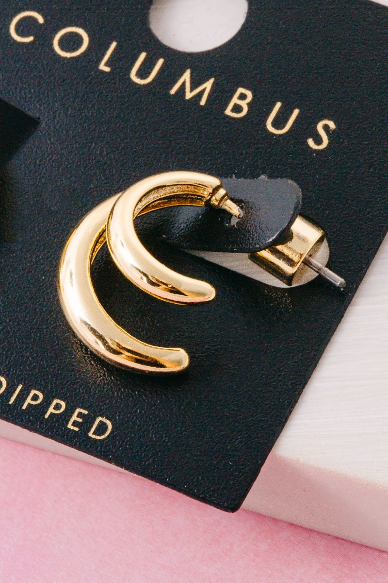 • This pair of hoop earrings introduces a unique gold dipped double band chunky style. Step into a world of refined taste as this pair of hoop earrings effortlessly refines the details of your outfit.