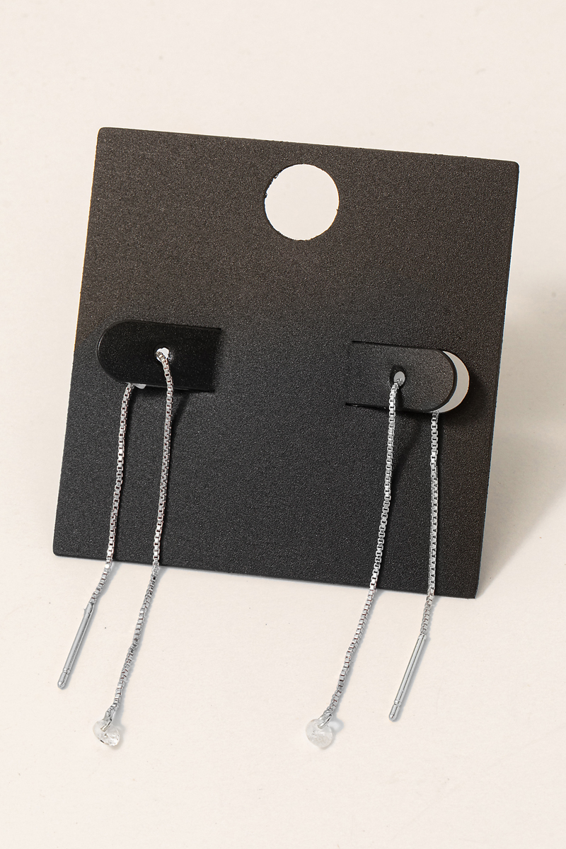 - This pair of dangle earrings brings a stunning dainty chain style. Elevate your ensemble with this chic, timeless pair of dangle earrings.