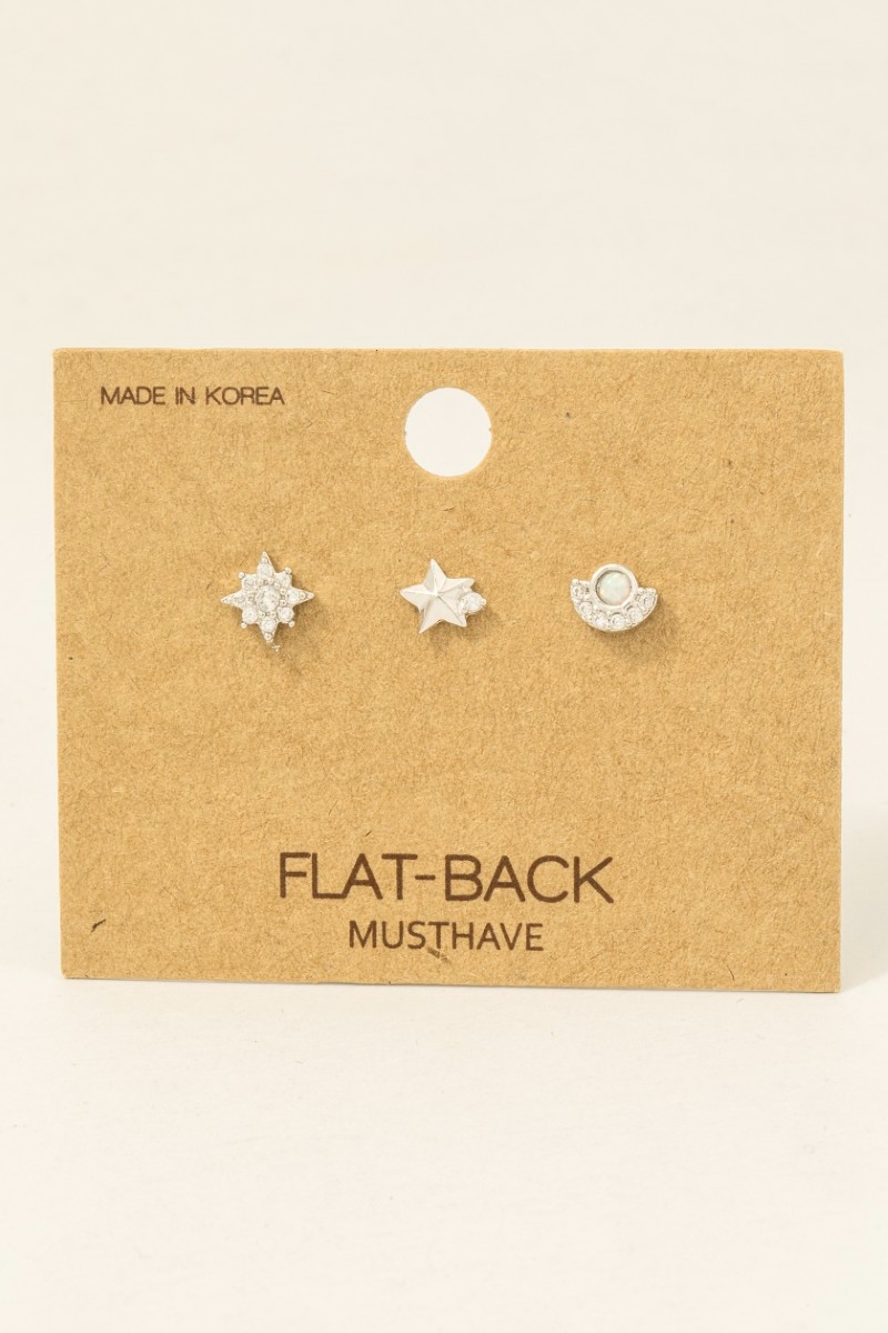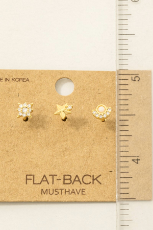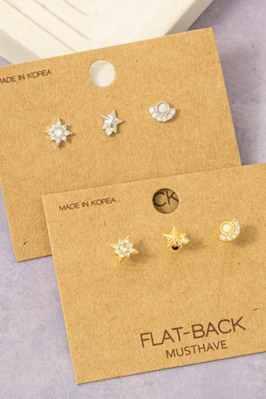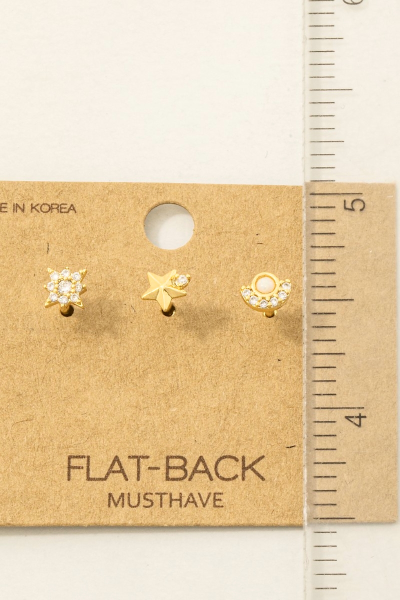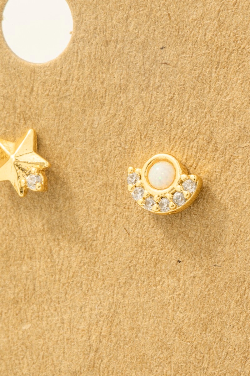 Gold Dipped Mini Star Lightning Heart Moon Stud Earrings Set