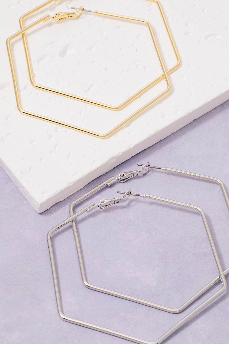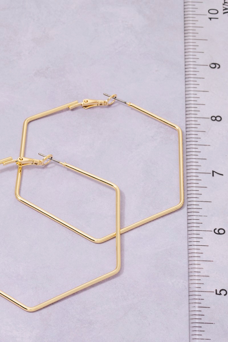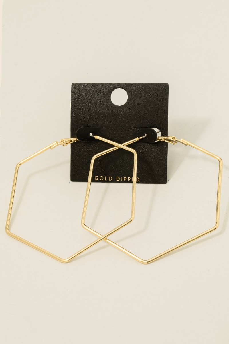 - This pair of hoop earrings showcases a unique gold dipped 60mm hexagon latch style. Immerse yourself in fashion finesse with this statement pair of hoop earrings.
