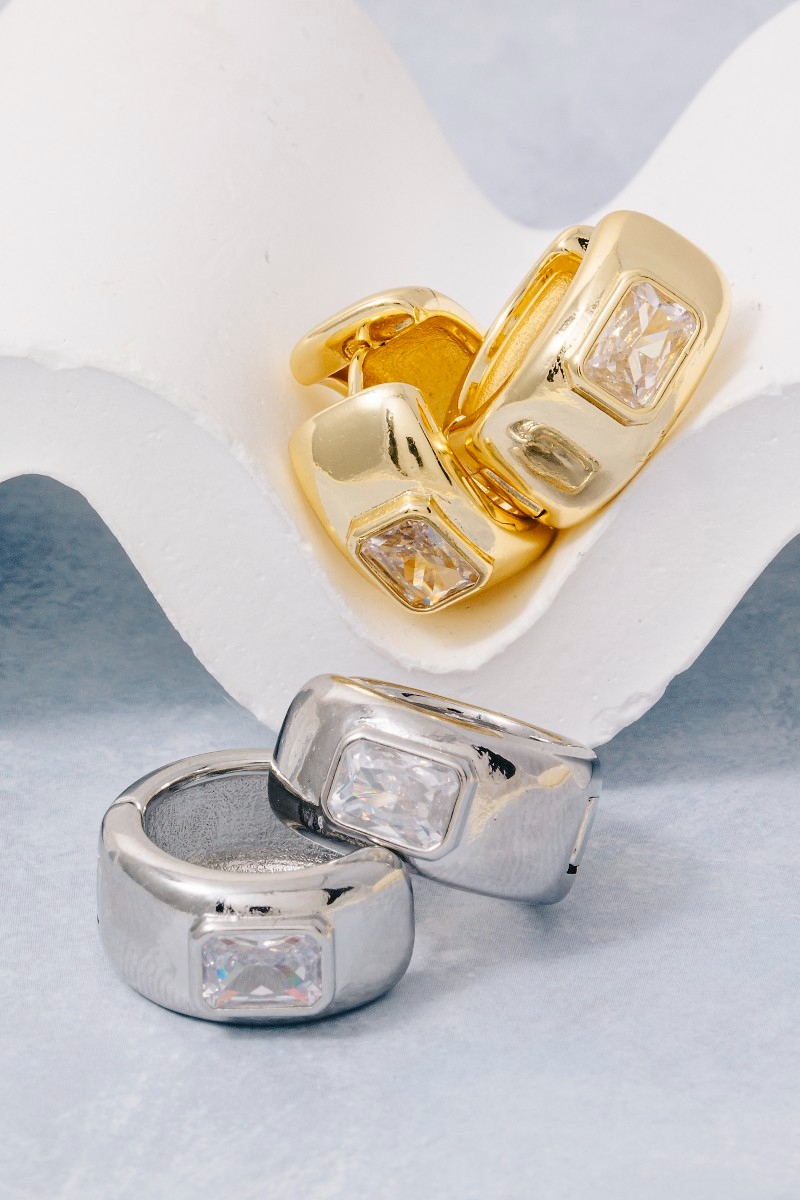 - this pair of columbus jewelry hoop earrings brings a unique gold dipped cubic zirconia baguette wide hinge style. Unveil a new dimension of sophistication as this pair of columbus jewelry hoop earrings effortlessly enhances the elegance of your ensemble.
