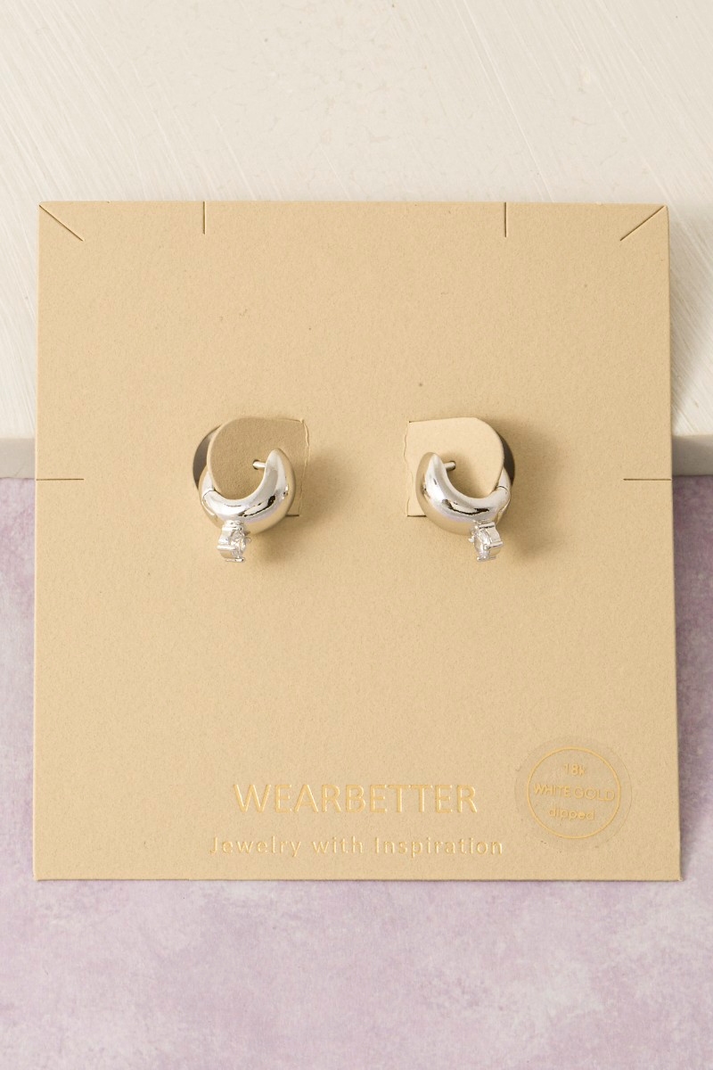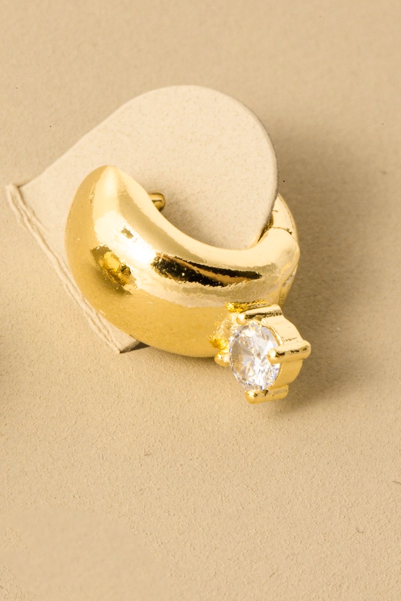 - This pair of hoop earrings showcases a unique gold dipped cubic zirconia mini hinge style. Experience the joy of accessorizing with this piece that effortlessly combines versatility and charm.