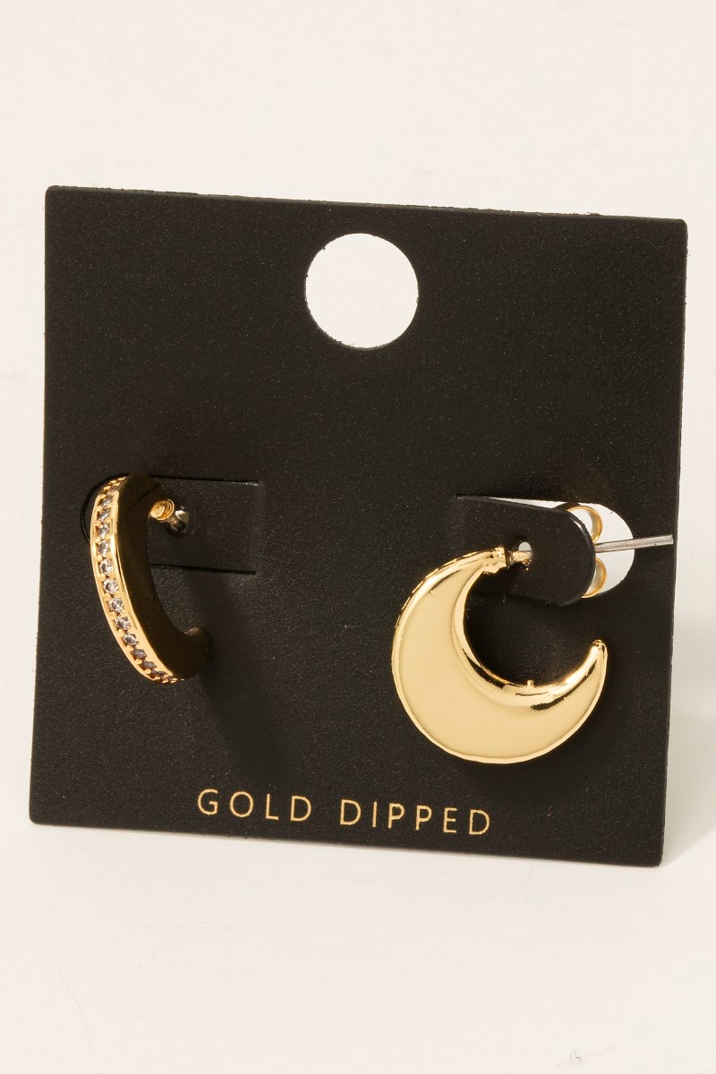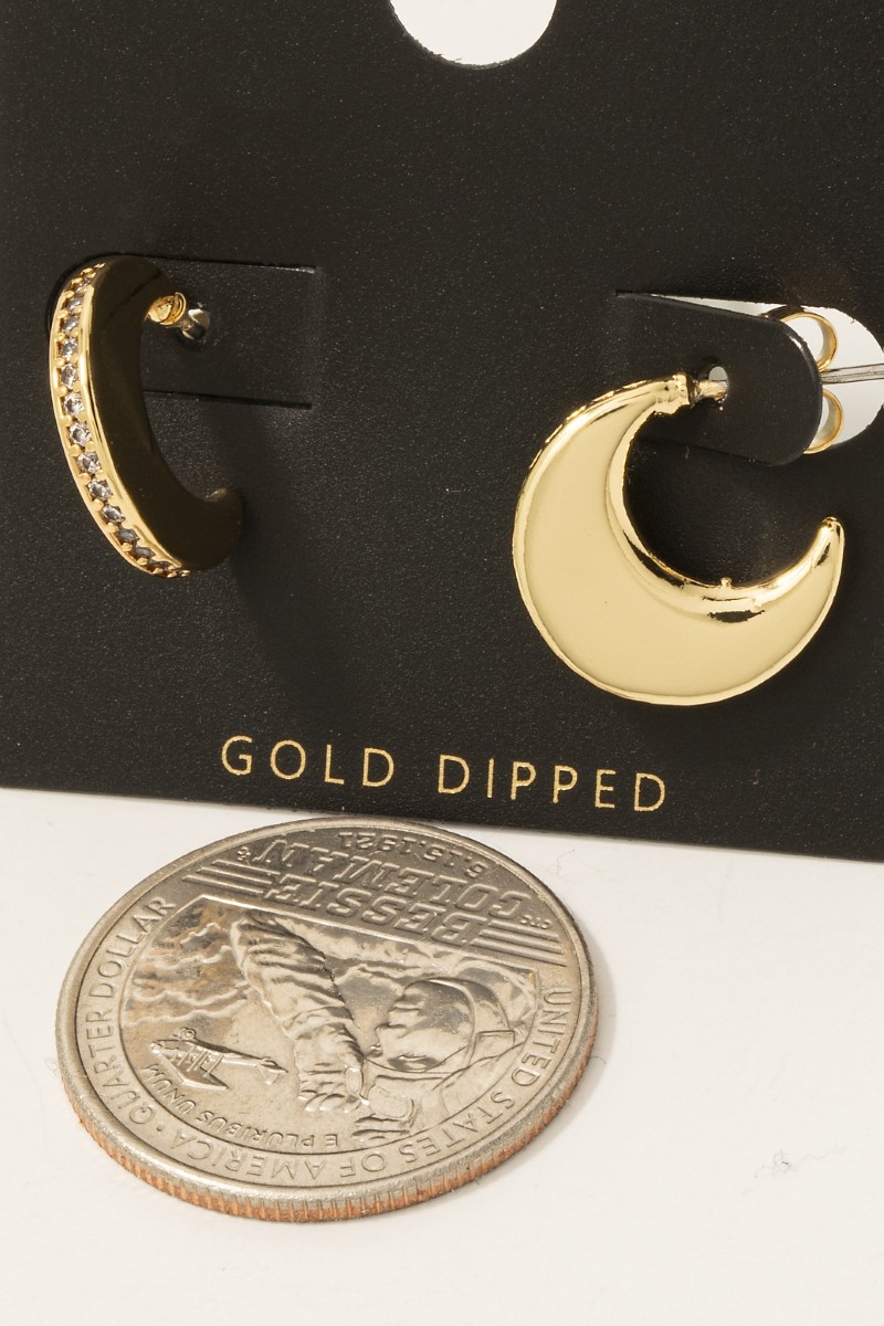 - this pair of columbus jewelry hoop earrings showcases a unique gold dipped cubic zirconia pave edge crescent style. Celebrate individual style with this versatile, eye-catching addition.