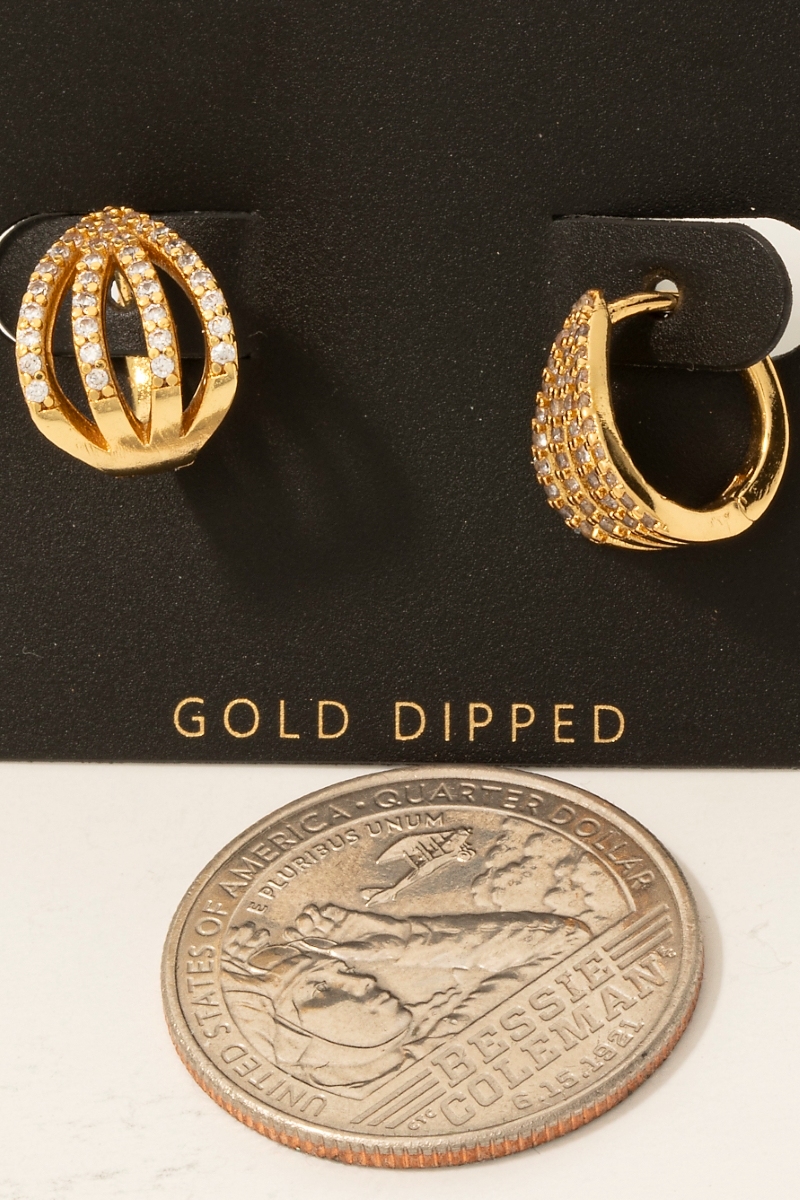 Gold Dipped Cz Stud End Hinge Hoop Earrings