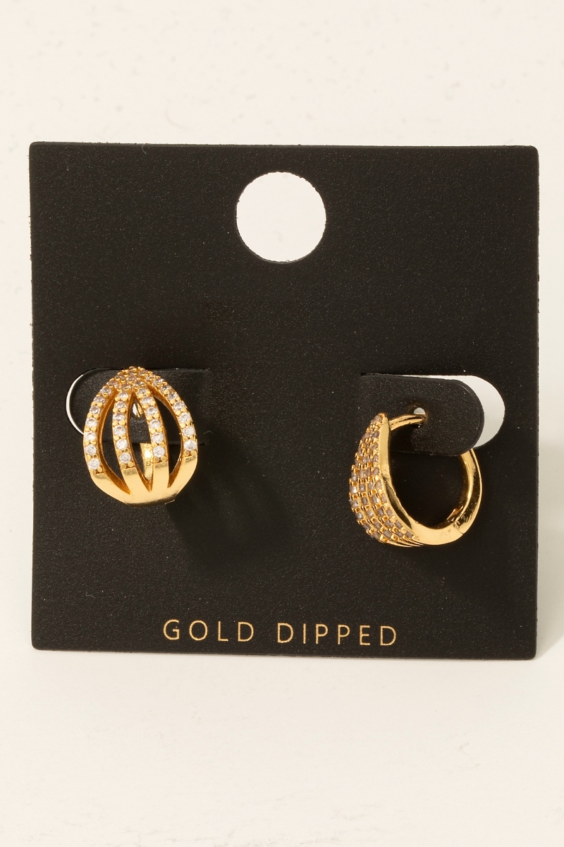 • this pair of columbus jewelry hoop earrings features a fashionable gold dipped cubic zirconia pave layered style. Immerse yourself in fashion finesse with this statement pair of hoop earrings.