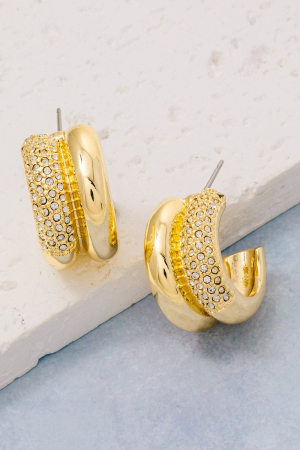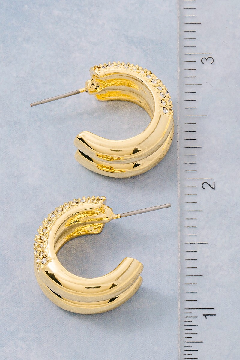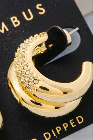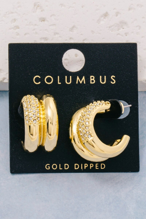• This pair of hoop earrings features a fashionable gold dipped cubic zirconia two row style. Celebrate individuality with this pair of hoop earrings that effortlessly expresses your unique sense of style.