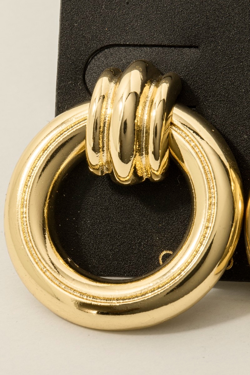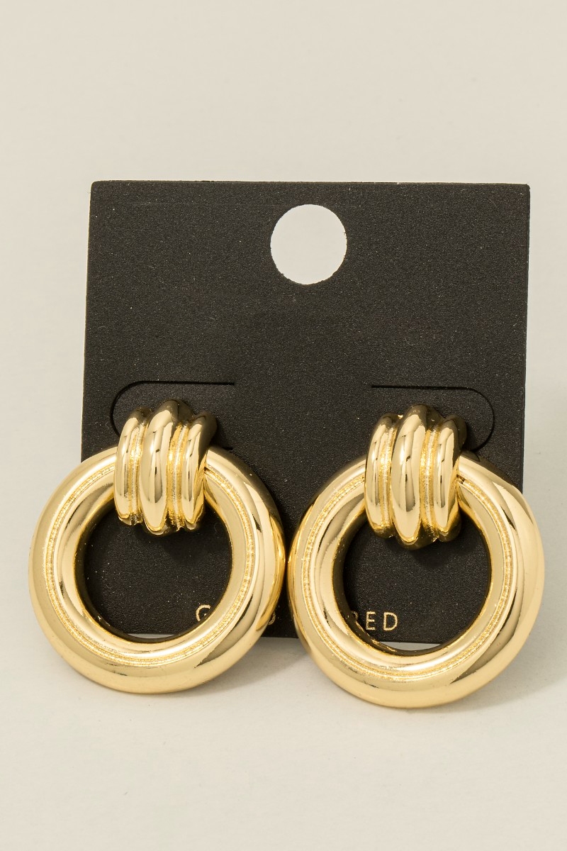 • This pair of earrings brings a unique gold dipped door knocker style. Embark on a journey of sartorial refinement as this pair of earrings effortlessly complements your fashion sense.