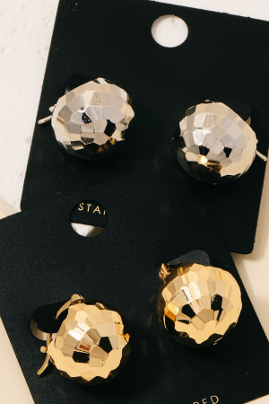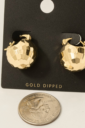 - This pair of hoop earrings introduces a stunning gold dipped geometric ball style. Experience a subtle blend of modernity and classic charm as this pair of hoop earrings effortlessly adorns your ensemble.