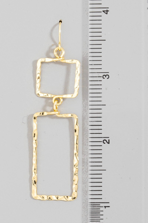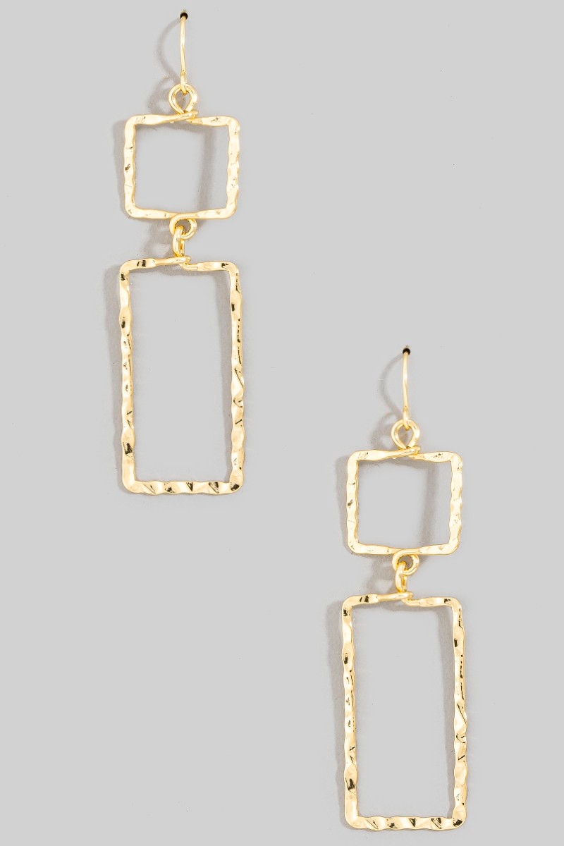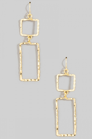 - This pair of dangle earrings features a fashionable gold dipped hammered square and rectangle style. Elevate your ensemble with this pair of dangle earrings that effortlessly captures the essence of refined fashion.