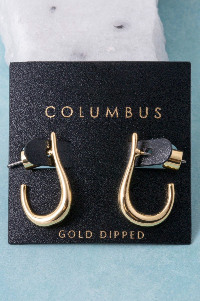 - This pair of hoop earrings displays a vibrant gold dipped j style. Experience a burst of creativity in accessorizing as this piece effortlessly sets the tone for your unique style.