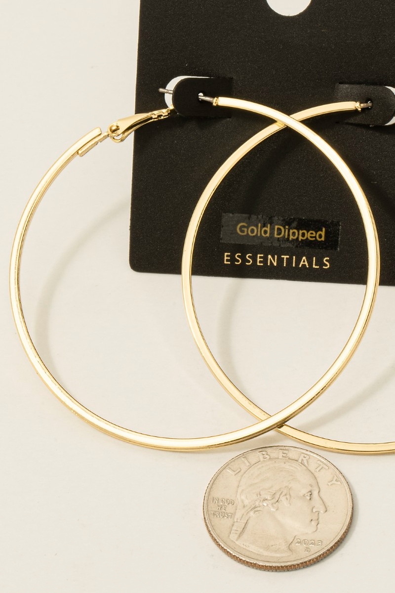 - This pair of hoop earrings displays a fashionable gold dipped large latch style. Embark on a journey of sartorial refinement as this pair of hoop earrings effortlessly complements your fashion sense.