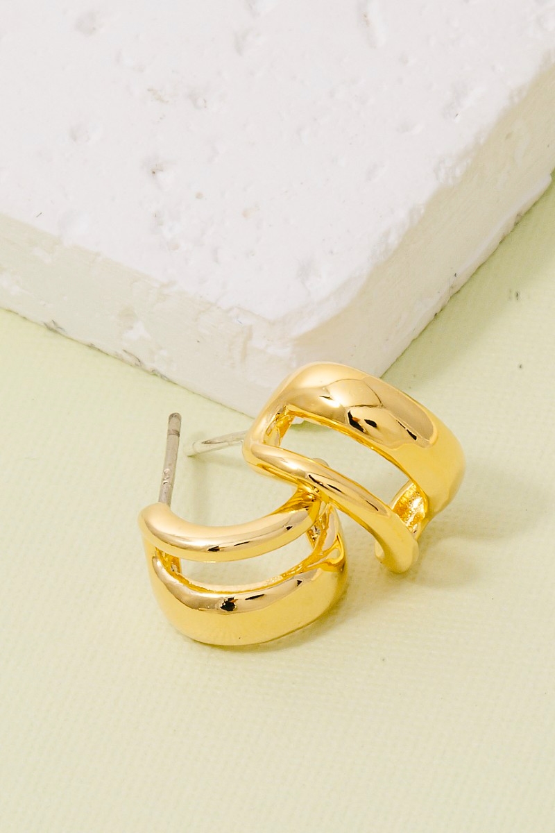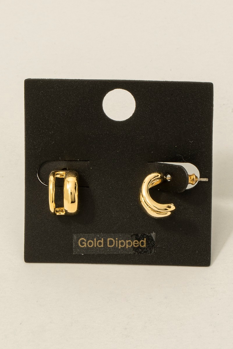• This pair of hoop earrings displays a fashionable gold dipped layered style. Experience a subtle blend of modernity and classic charm as this pair of hoop earrings effortlessly adorns your ensemble.
